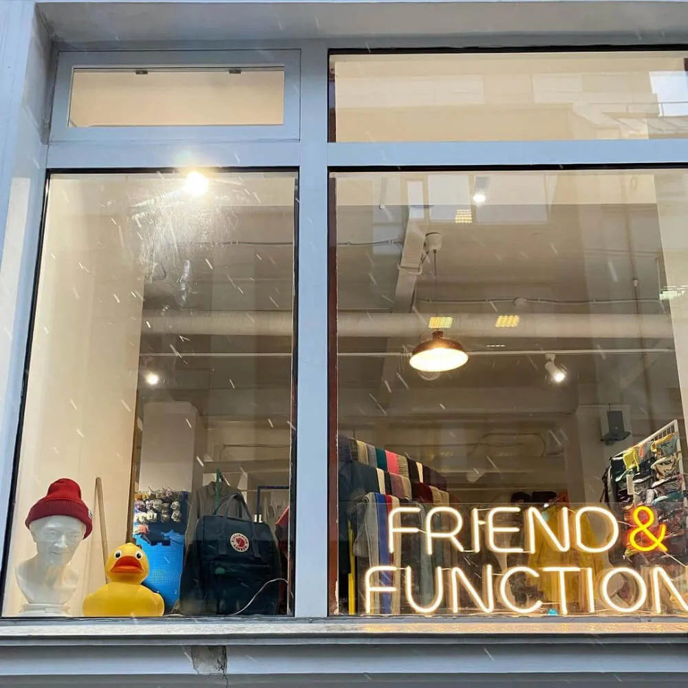 В Friend Function мы продаем все, что нужно в городе: рюкзаки, шапки, кепки, солнечные очки, сумки на пояс, дождевики и много других нужных вещей. А еще у нас можно выбрать нетривиальные подарки на любой праздник. Мы собираем бренды с мировым именем и крутые локальные марки, а также развиваем линейку собственного производства. Так что если вам нужен мерч с вашим дизайном - это тоже к нам.
