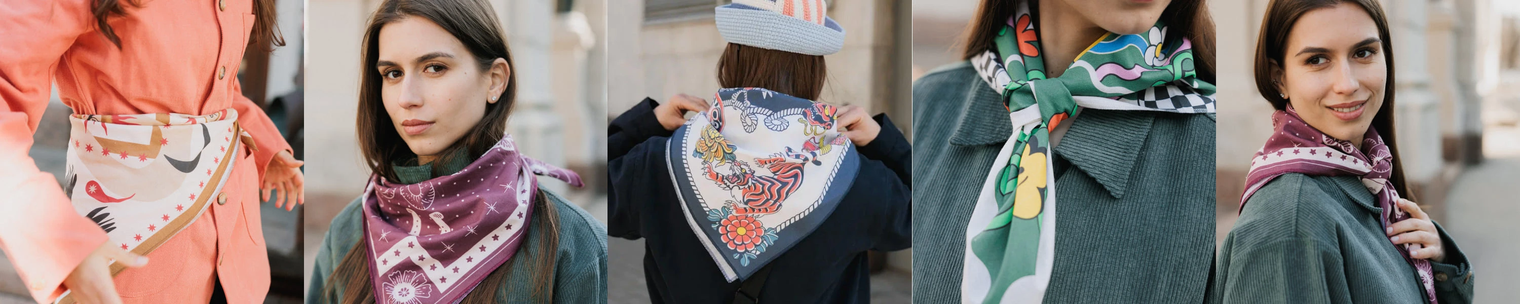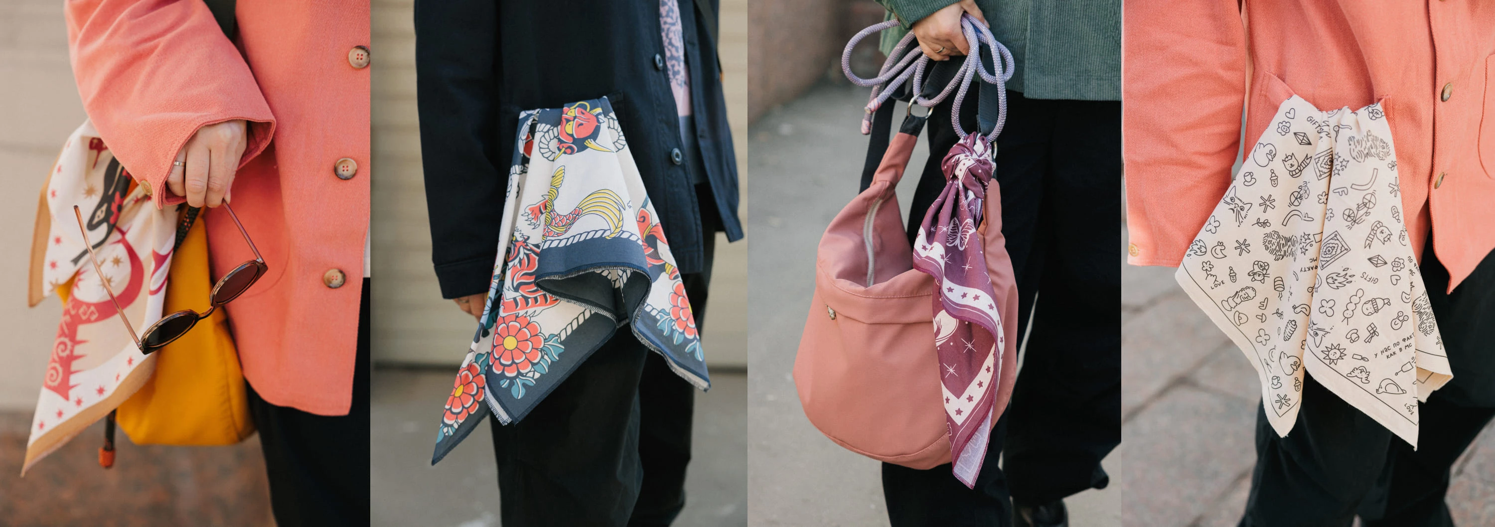 Платки-банданы сочетают простоту квадратной формы и выразительность рисунка