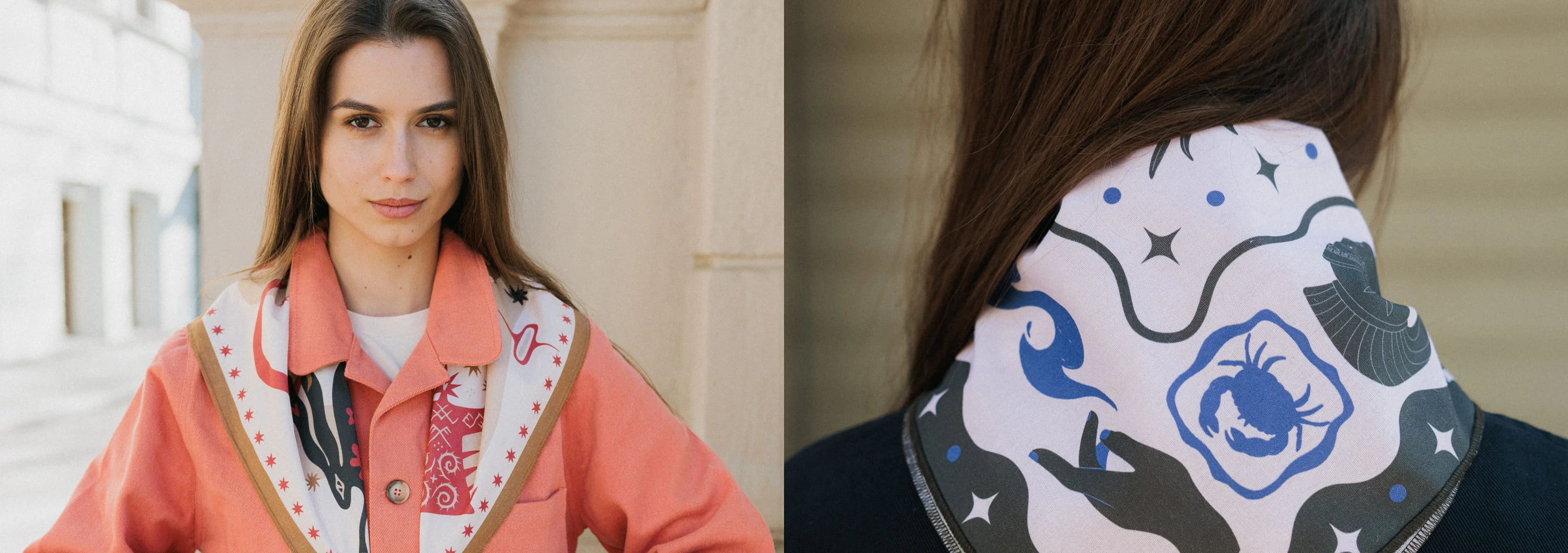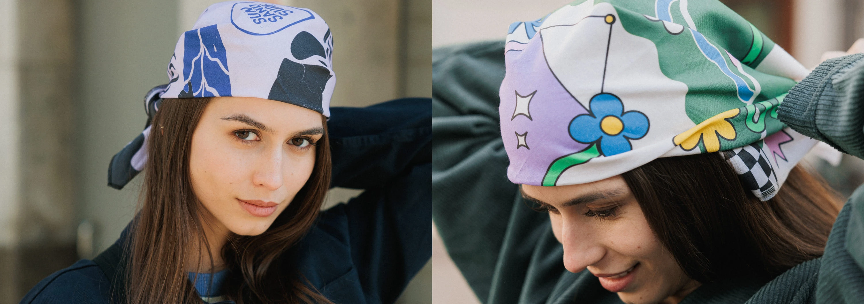 Каждая из них выполнена в соответствии с определенной эстетикой: некоторые более спокойные, с немного выцветшими оттенками и отсылками к винтажной эстетике, некоторые — более яркие и смелые. «Брутализм» может понравиться любителям графики и ярких строгих форм, «Азия» — тем, кто ценит орнаменты и культурные мотивы востока, «Солнечная» добавляет простой лёгкости и тепла, а «Вестерн» — тем, кто любит что-то магическое. А наша «Фирменная» бандана аккуратно собирает в себе все, чем мы живем в Friend Function, и становится универсальным вариантом на каждый день.