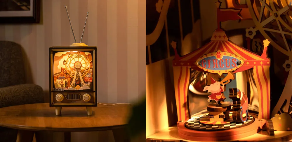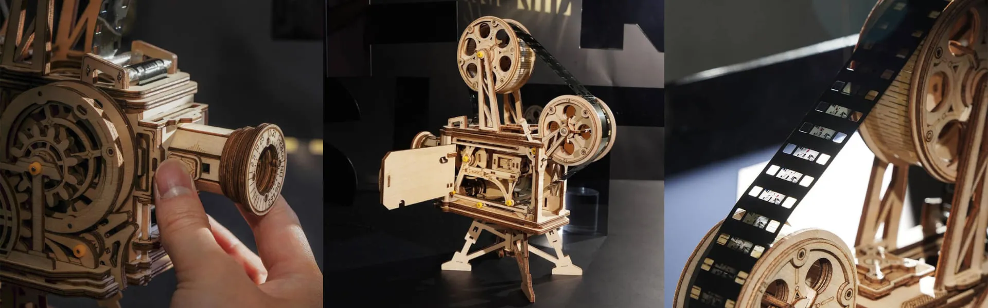 Robotime выпускает такие наборы с 2007 года. Сейчас в линейках Rolife, Rokr и Robud они делают сотни моделей — от винтажных музыкальных шкатулок и уютных кафе до механических дирижаблей, поездов и динозавров. Есть варианты для детей, есть — для тех, кто хочет собрать что-то посложнее, в одиночку или всей семьёй. И везде — реалистичные детали, дерево, ткань, провода, а ещё — подсветка, механика и даже музыка.