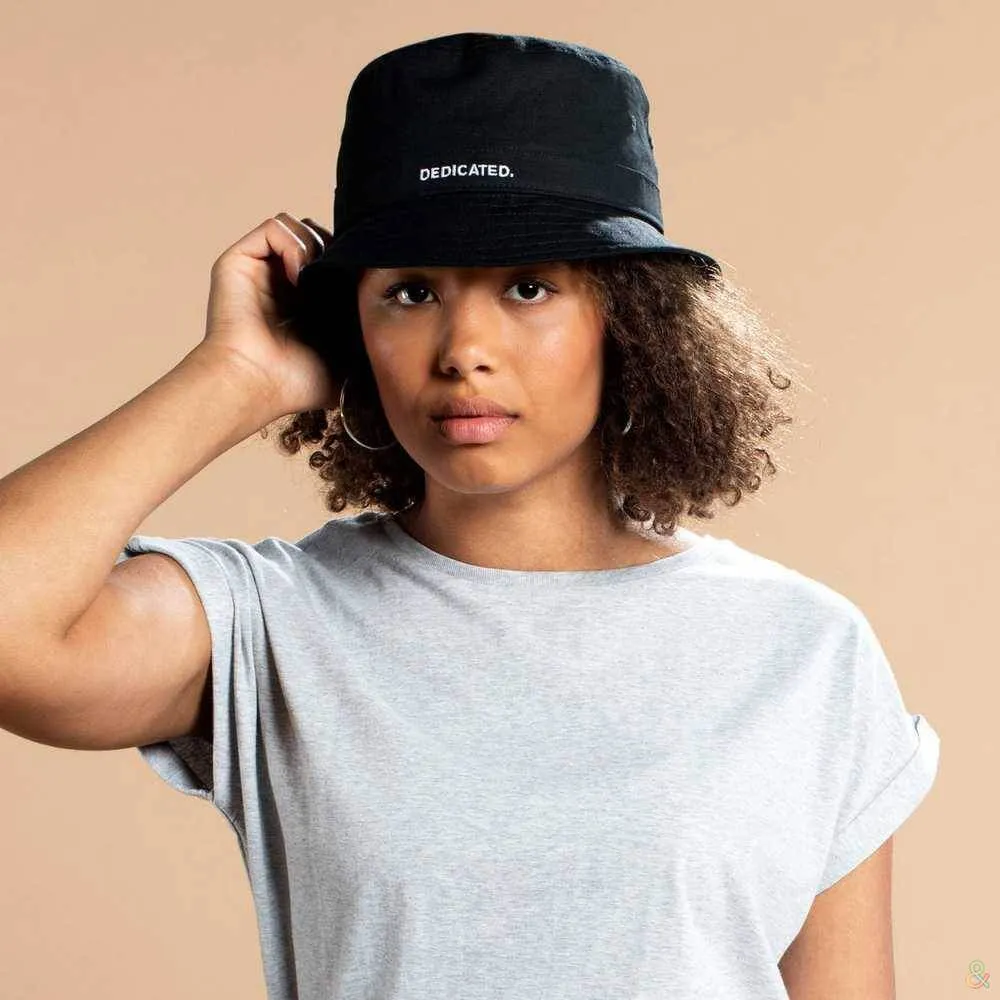 Еще один минималистичный вариант из органического хлопка – визитной карточки Dedicated. Устойчивая мода актуальна сейчас и, мы уверены, в дальнейшем, так что панама будет модной не только этим летом и сослужит вам хорошую службу.