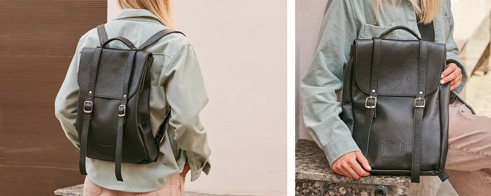 Для ценителей городской классики и натуральной кожи, а она, как вы знаете, славится своими водоотталкивающими свойствами. Рюкзак застегивается на кнопки, и вмещает в себя ноутбук с диагональю до 17 дюймов, а его дизайн максимально лаконичный, чтобы можно было носить его всей семьей.