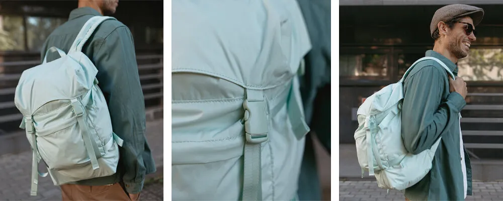 Рюкзак имеет подкладку и регулируемые мягкие лямки. По размеру он идеально подходит для городской жизни, путешествия с ручной кладью или походов выходного дня – вы же не будете везде только с ноутбуком ходить, правда? Без сворачивания верхней складки 27 литров, а в свернутом виде около 18 литров.