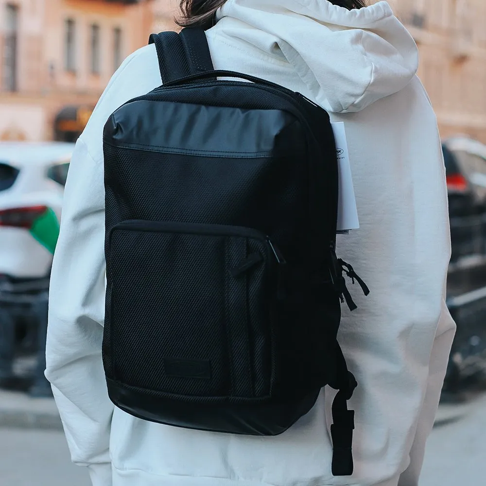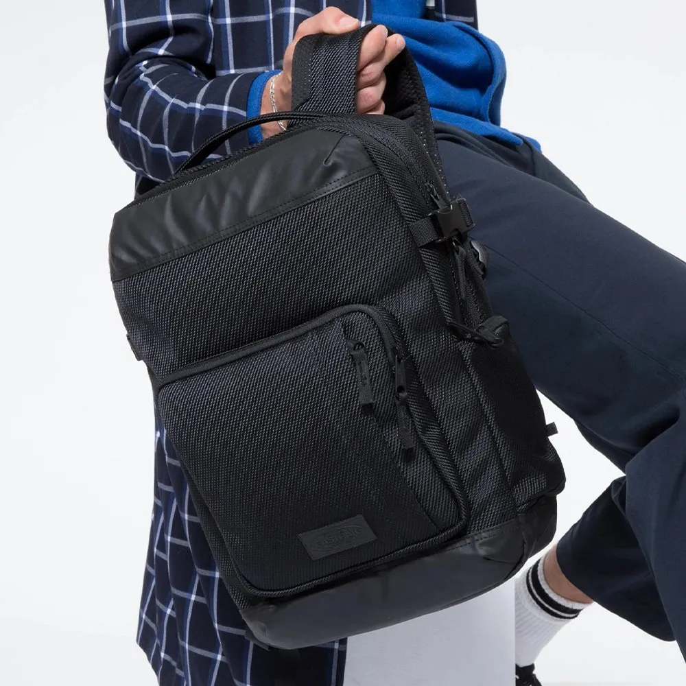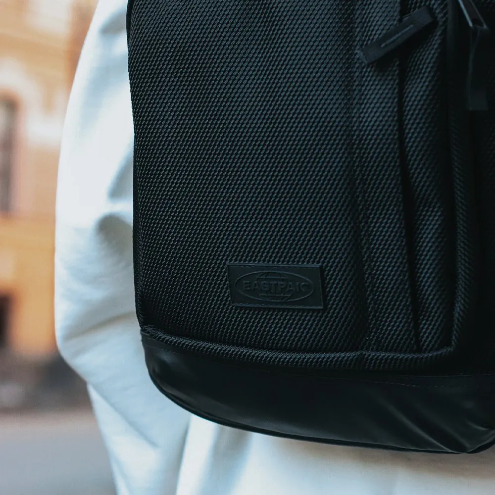 Рюкзак в классическом дизайне в стиле techwear от Eastpak для деловых перелетов, повседневного ношения и учебы. Отличается внешним дизайном и тканью с оригинальной фактурой.