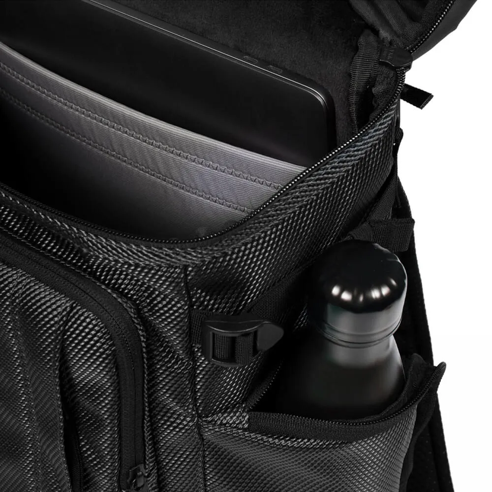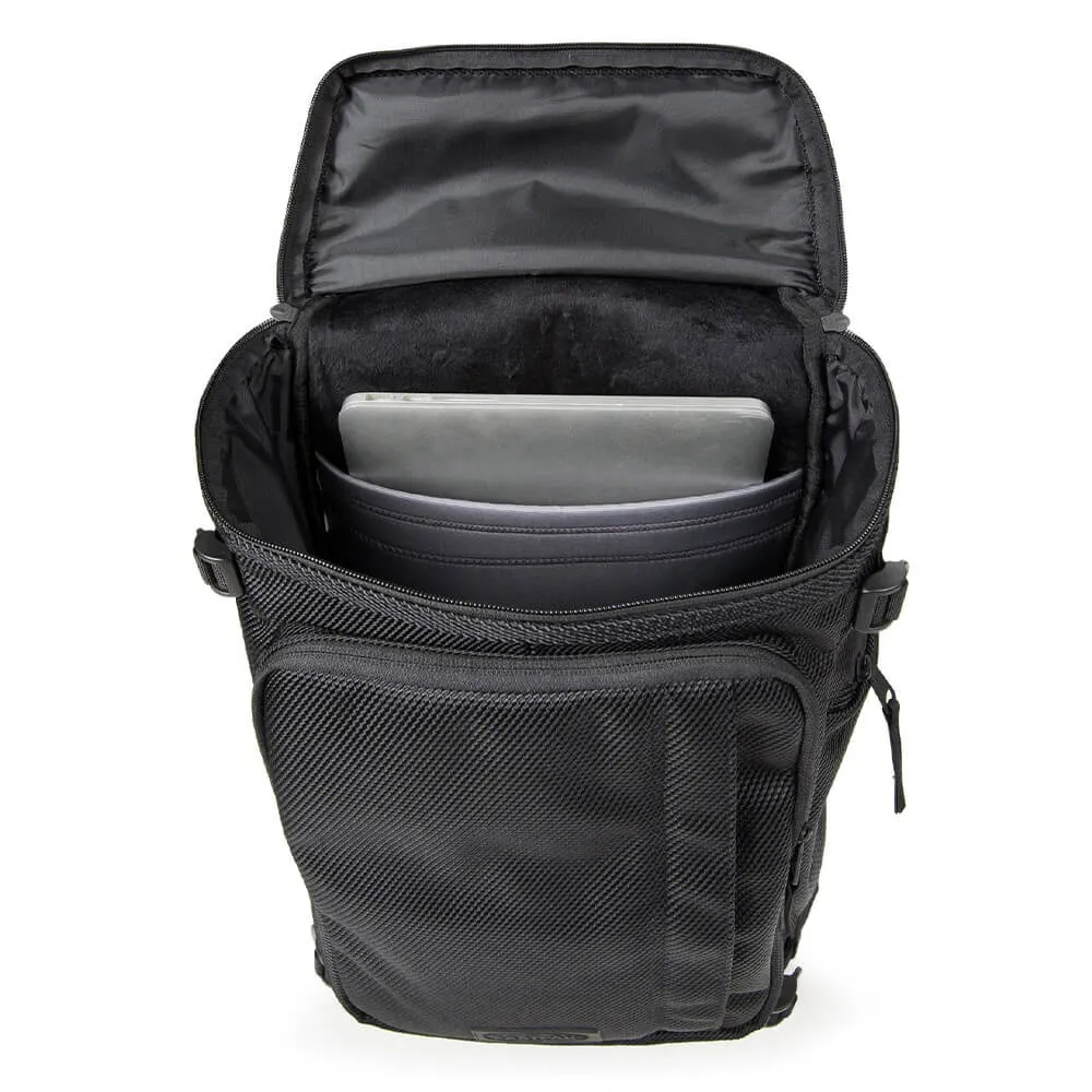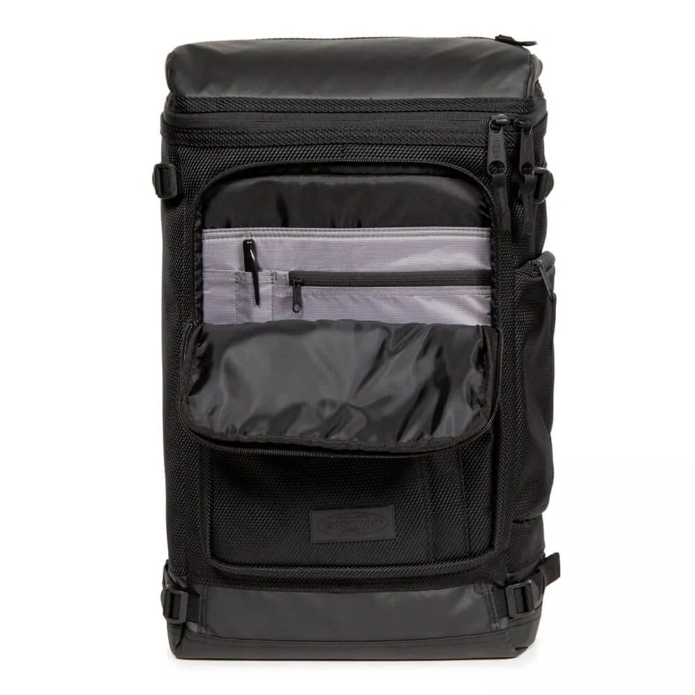 Городской рюкзак Tecum Top Cnnct черного цвета в стиле techwear от Eastpak для деловых перелетов, повседневного ношения и учебы. Отличается внешним дизайном и тканью с оригинальной фактурой.