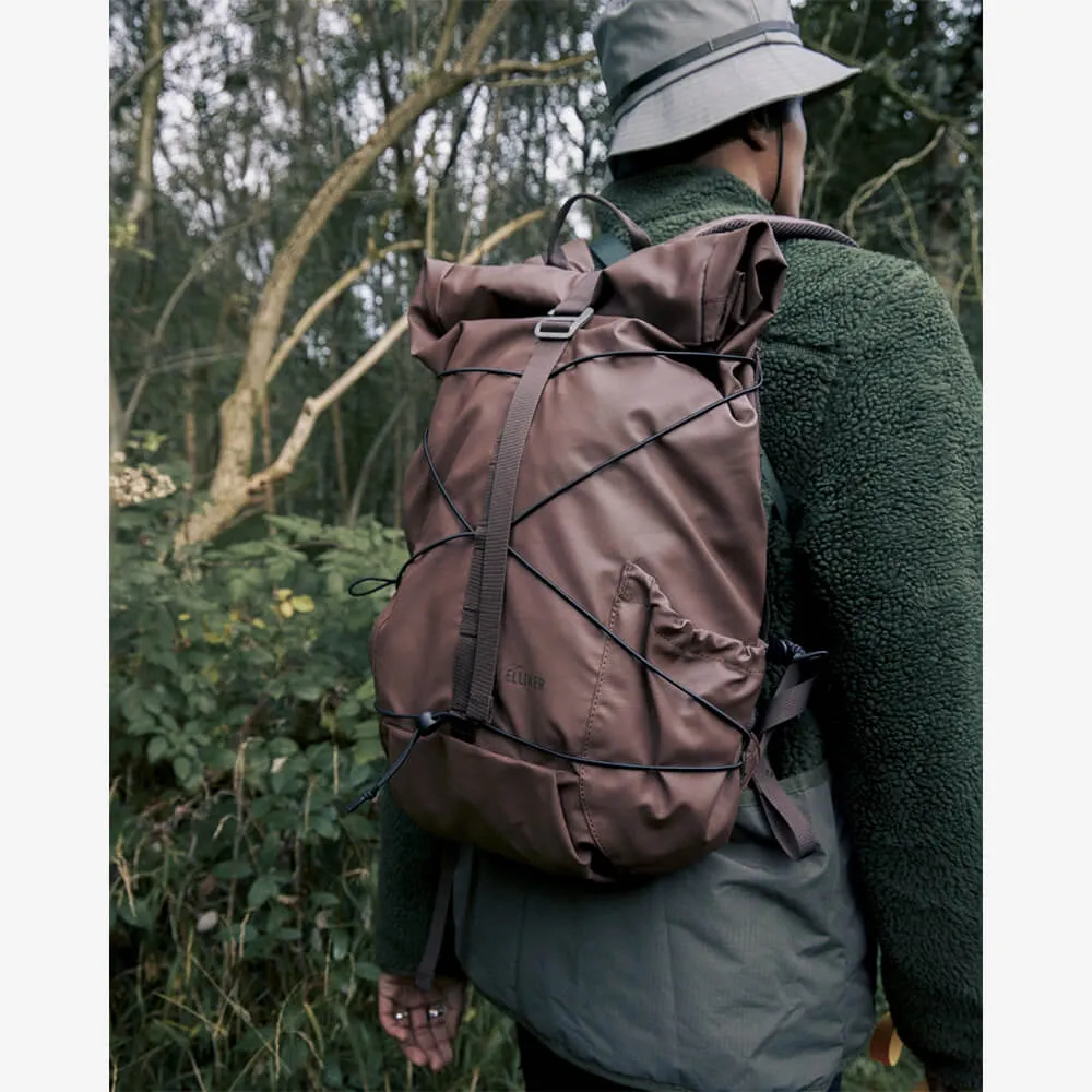 Лёгкий и прочный рюкзак Dayle в коричневом цвете от британского бренда ELLIKER изготовлен из 100% переработанного полиэстера с полиуретановым покрытием.