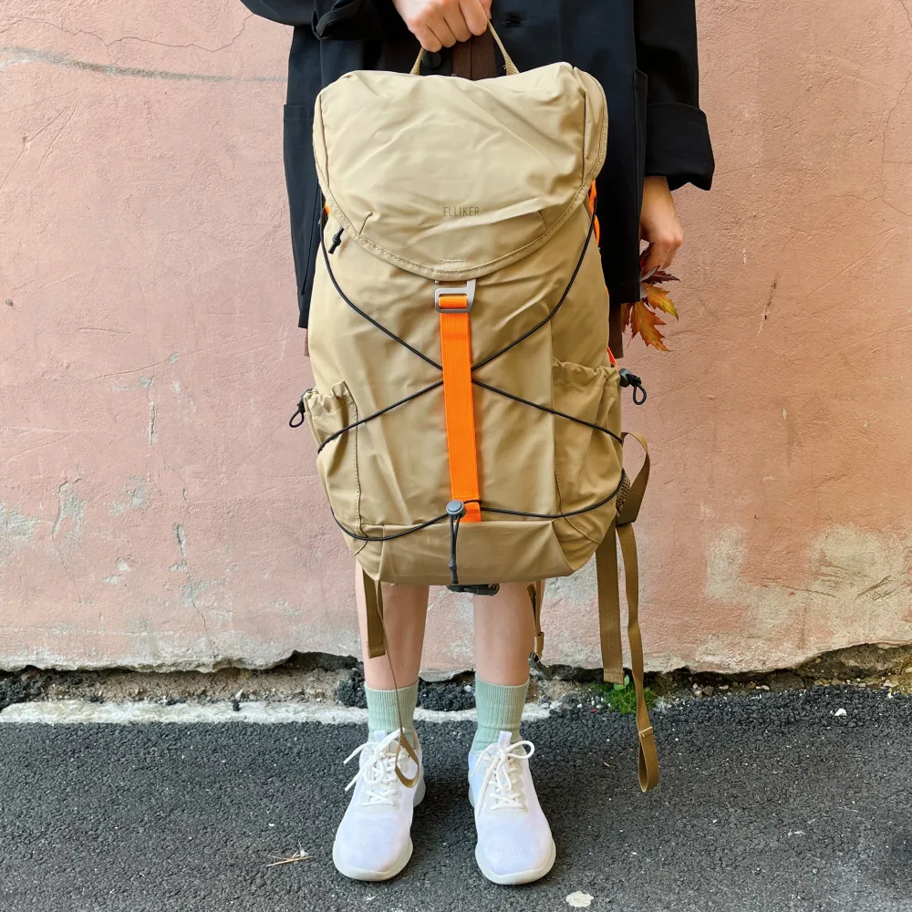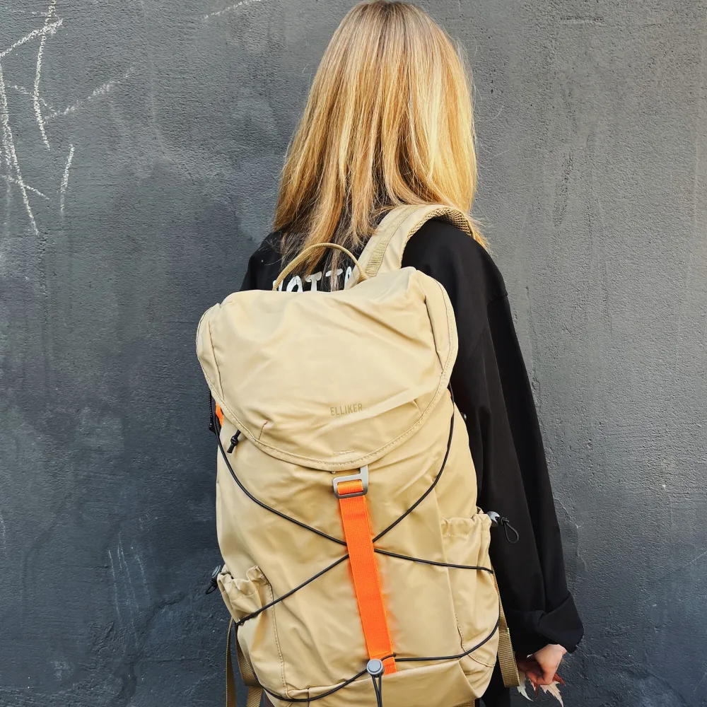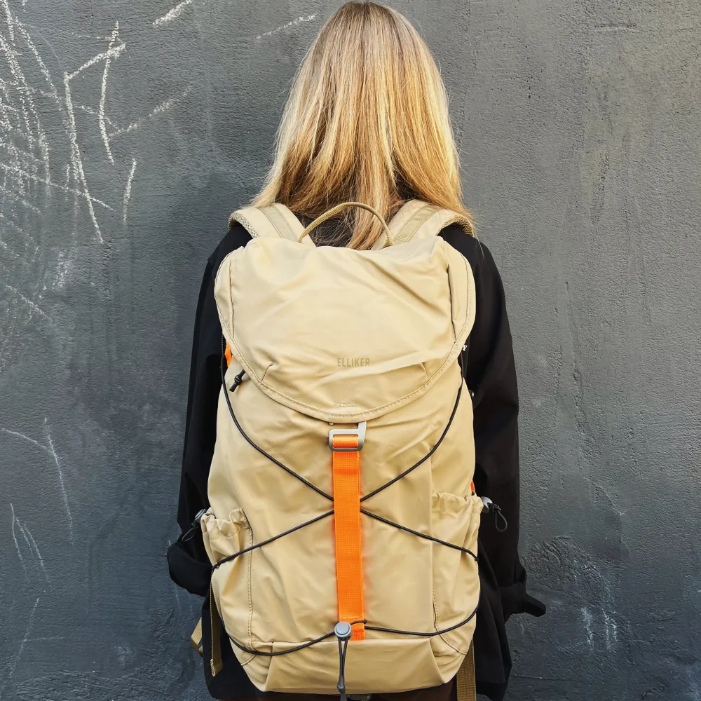 Лёгкий и прочный рюкзак Wharfe в песочном цвете от британского бренда ELLIKER изготовлен из 100% переработанного полиэстера с полиуретановым покрытием.