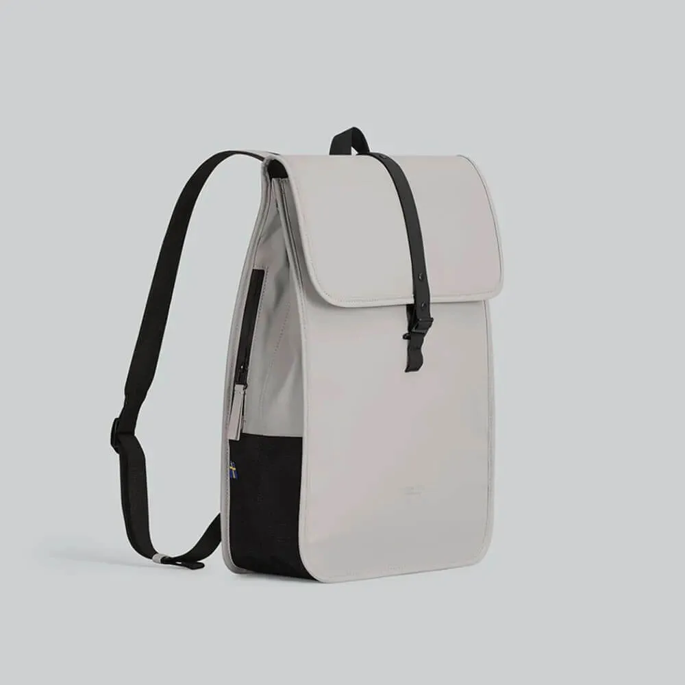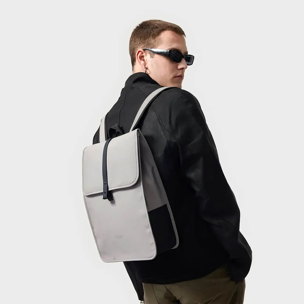 Он изготовлен из переработанного полиэстера с полиуретановым покрытием, который имеет рейтинг водонепроницаемости 20 000 мм, что делает рюкзак не только функциональным, но и экологически чистым.