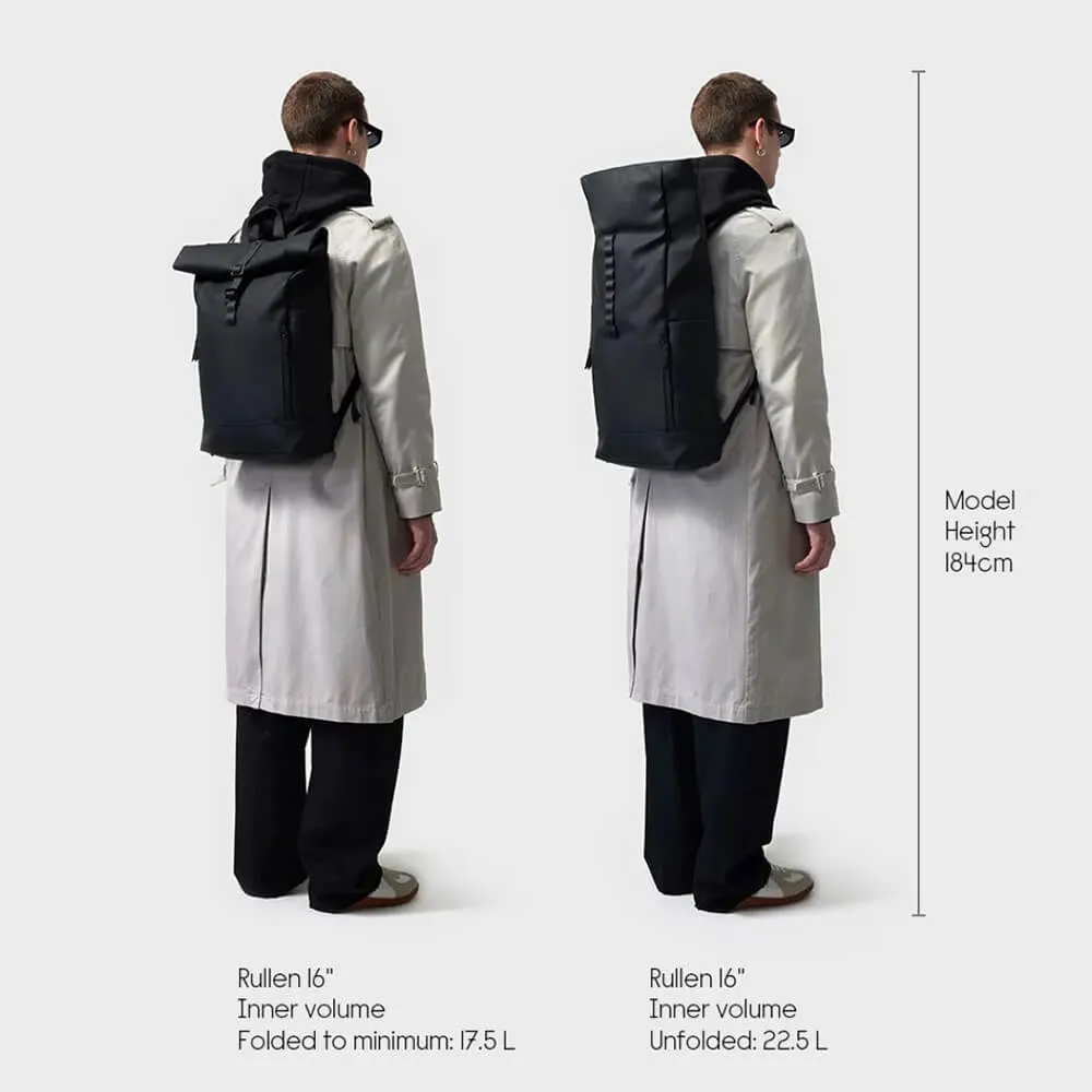 Роллтоп-рюкзак Rullen изготовлен из водонепроницаемого материала и идеально подходит для ежедневного использования. В большом отсеке с легкостью поместятся все необходимые вещи, включая ноутбук до 16 дюймов, а внешние карманы на молнии вы можете использовать для предметов первой необходимости.