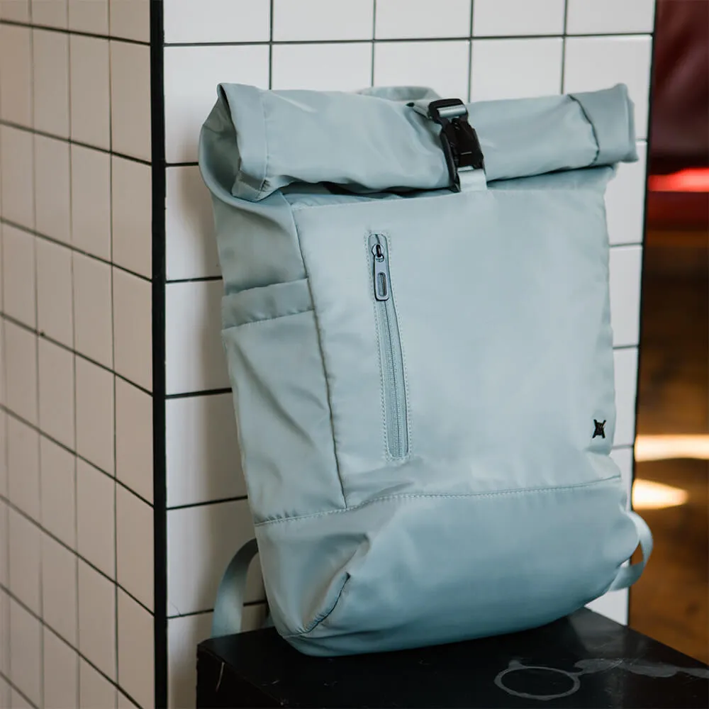 Компактный и вместительный городской голубой рюкзак от ребят из Молодости.
