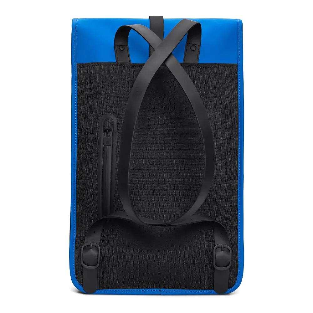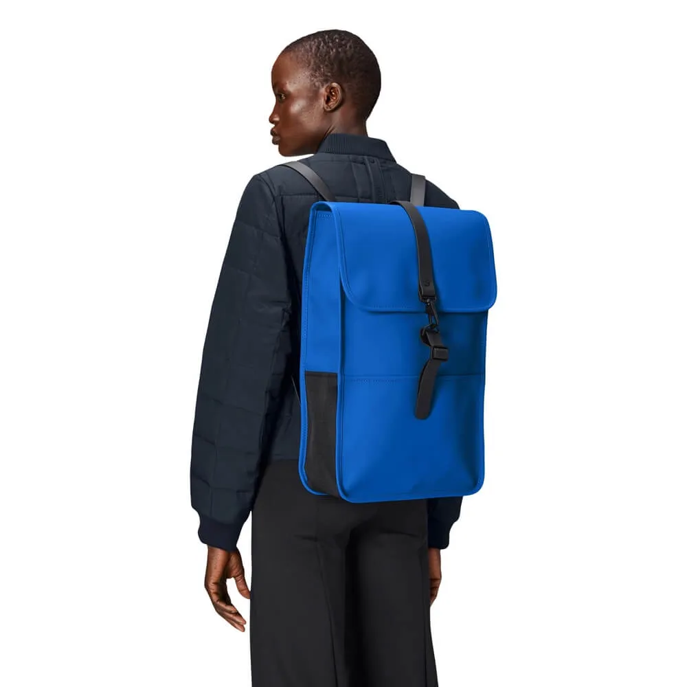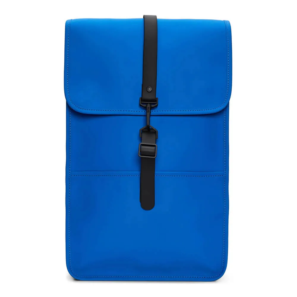 Минималистичный непромокаемый синий рюкзак Rains - это классическая форма рюкзака кейса, изготовленная из фирменной водонепроницаемой полиуретановой ткани.