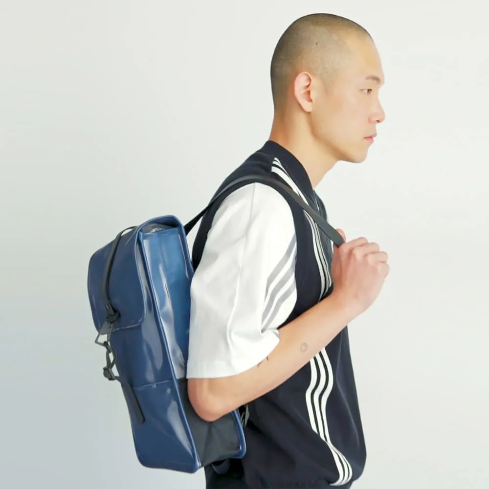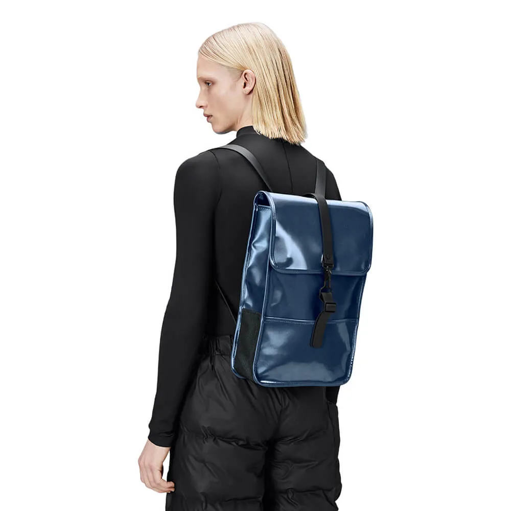 Минималистичный непромокаемый рюкзак Rains Mini - это классическая форма синий мини-рюкзака кейса в смеси с новыми технологичными тканями.