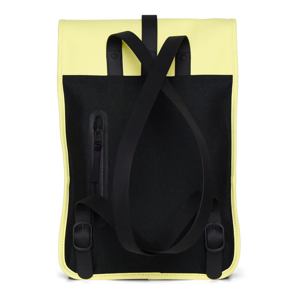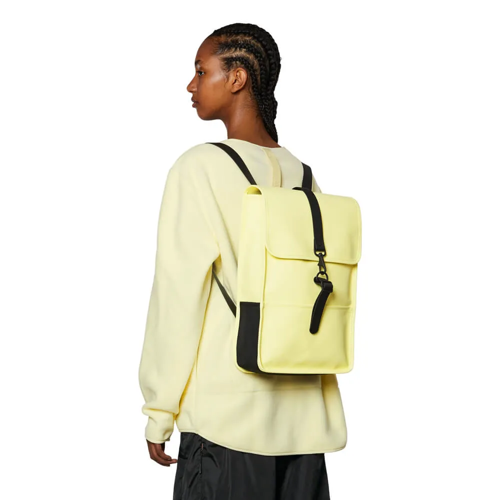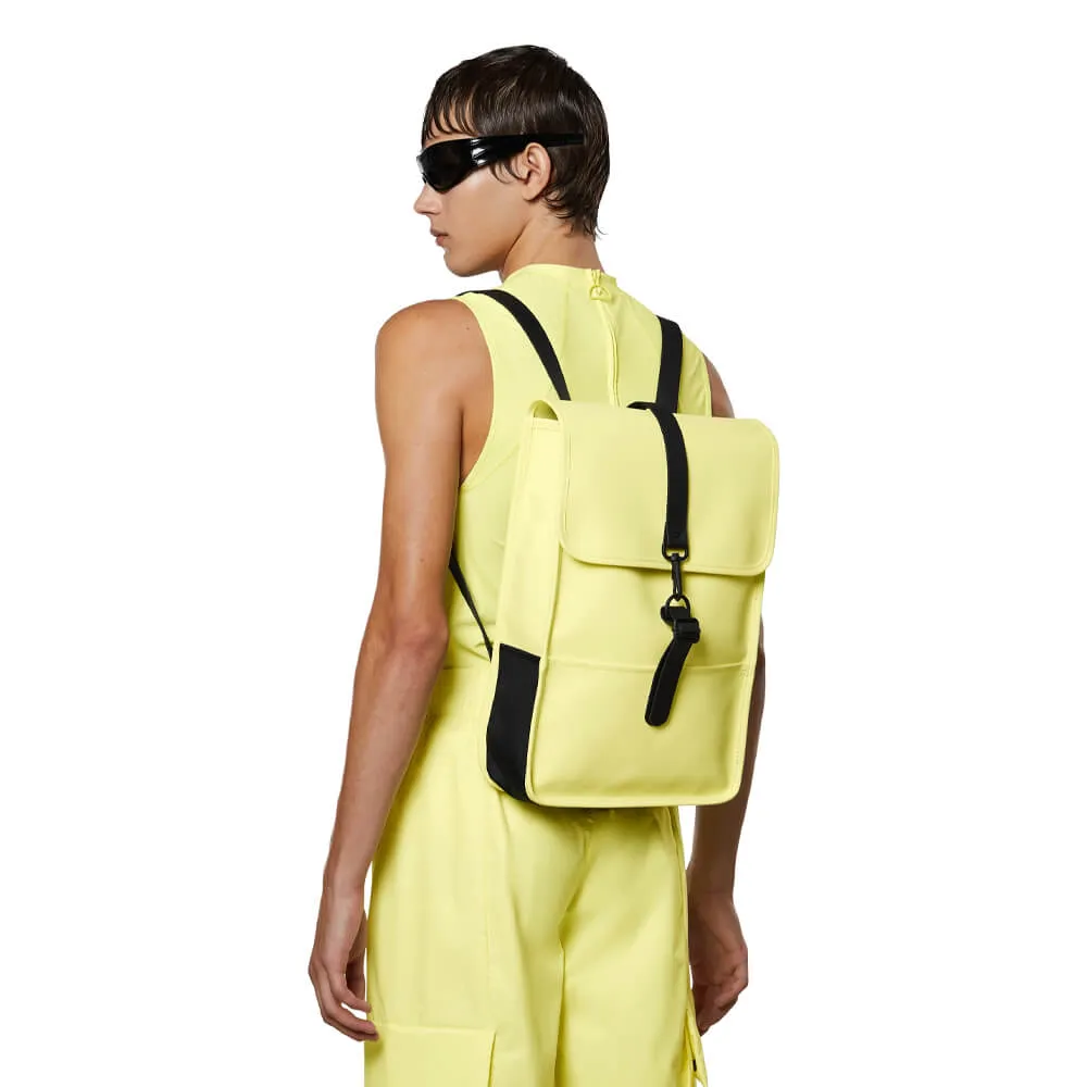 Минималистичный непромокаемый рюкзак Rains Mini - это классическая форма желтого мини-рюкзака кейса в смеси с новыми технологичными тканями.