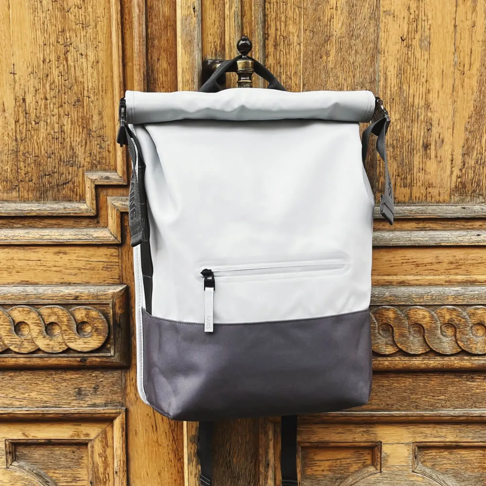 Спортивный и практичный светло-серый рюкзак Rains Trail Rolltop идеально подходит для активной жизни в городе, поездок на велосипеде и пеших прогулок. Для велосипедистов спереди предусмотрен регулируемый нагрудный ремень, который обеспечит надежную посадку.