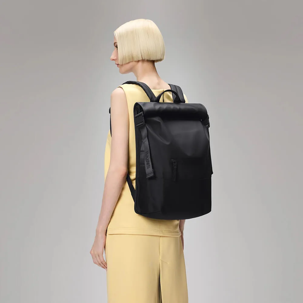 Спортивный и практичный черный рюкзак Rains Trail Rolltop идеально подходит для активной жизни в городе, поездок на велосипеде и пеших прогулок. Для велосипедистов спереди предусмотрен регулируемый нагрудный ремень, который обеспечит надежную посадку.