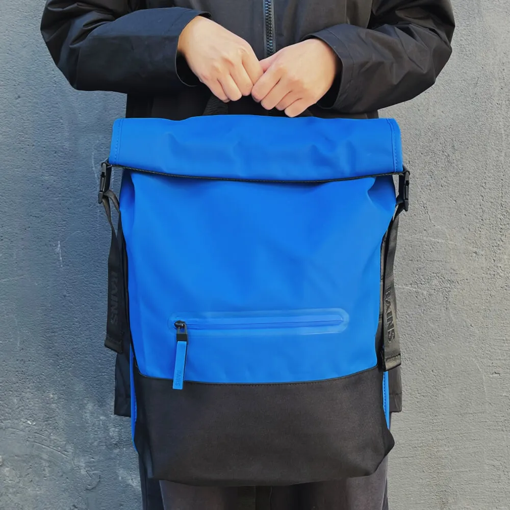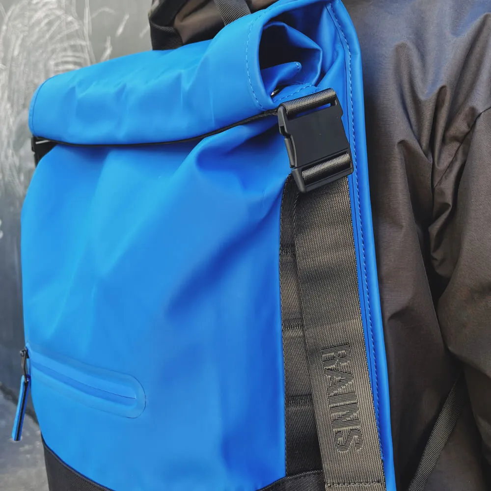 Спортивный и практичный синий рюкзак Rains Trail Rolltop идеально подходит для активной жизни в городе, поездок на велосипеде и пеших прогулок. Для велосипедистов спереди предусмотрен регулируемый нагрудный ремень, который обеспечит надежную посадку.