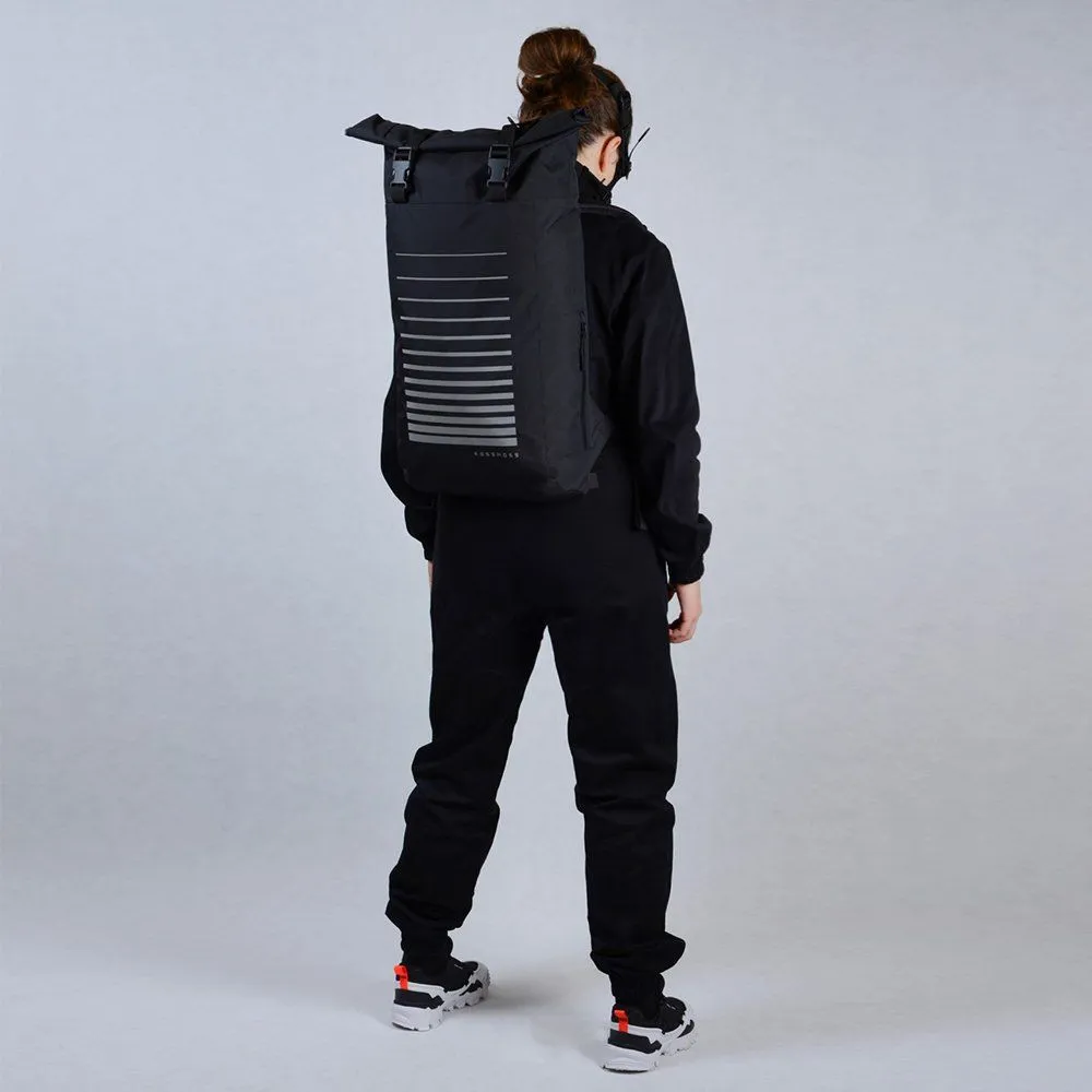 Черный ролл топ рюкзак со светоотражающим принтом.