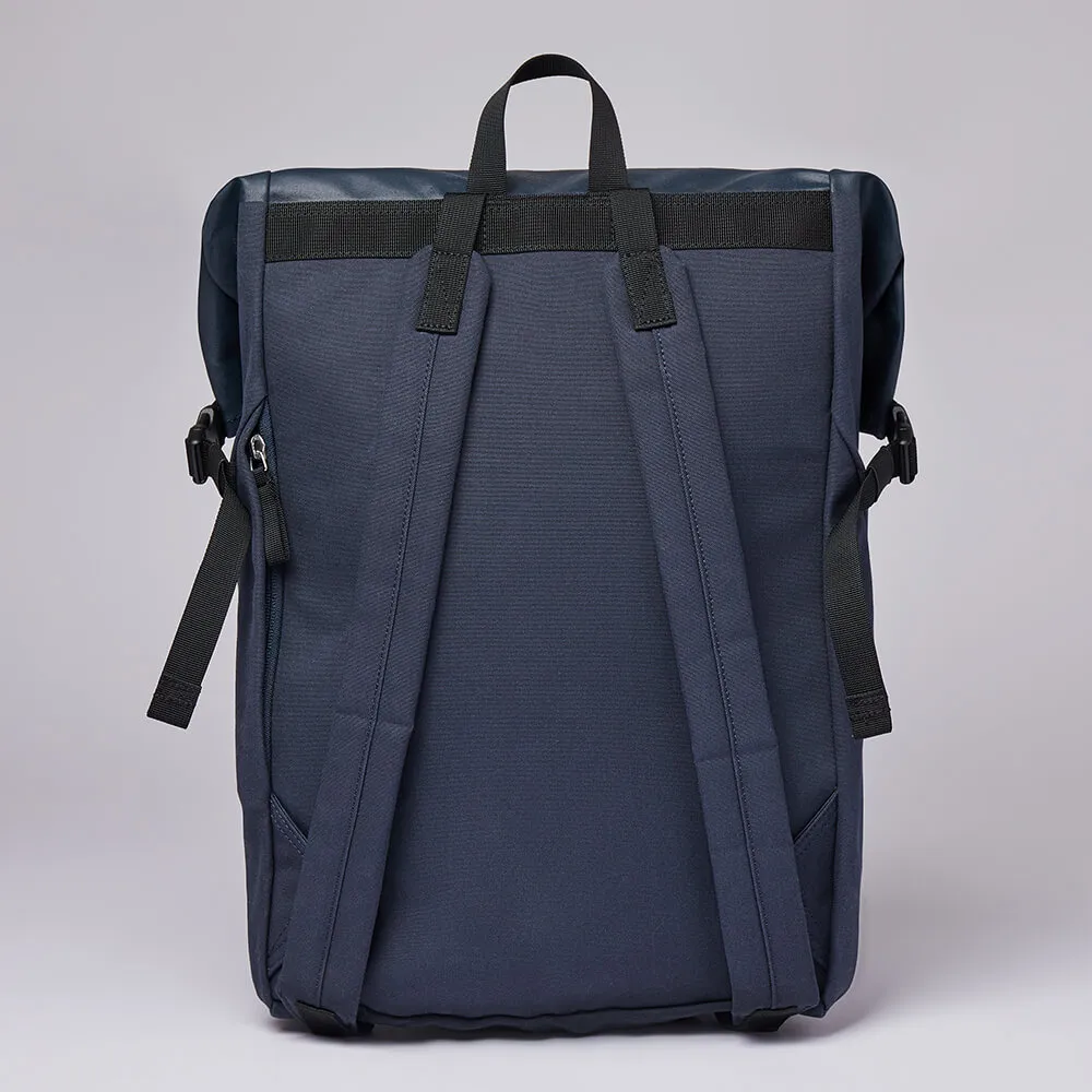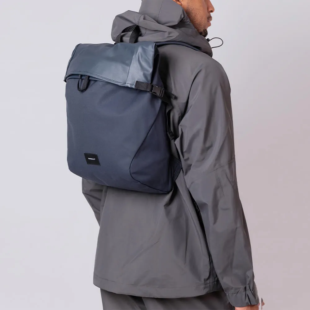 Синий рюкзак роллтоп Alfred шведского бренда Sandqvist изготовлен из органического хлопка и переработанного полиэстера. Внутри отделение для ноутбука диагональю 13 дюймов. Верх рюкзака покрыт шелкографией для дополнительной водостойкости. Рюкзак из серии Ground станет идеальным спутником на каждый день.