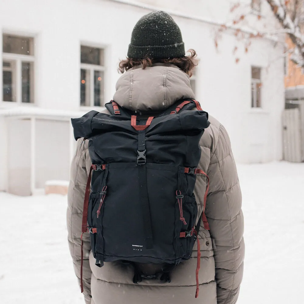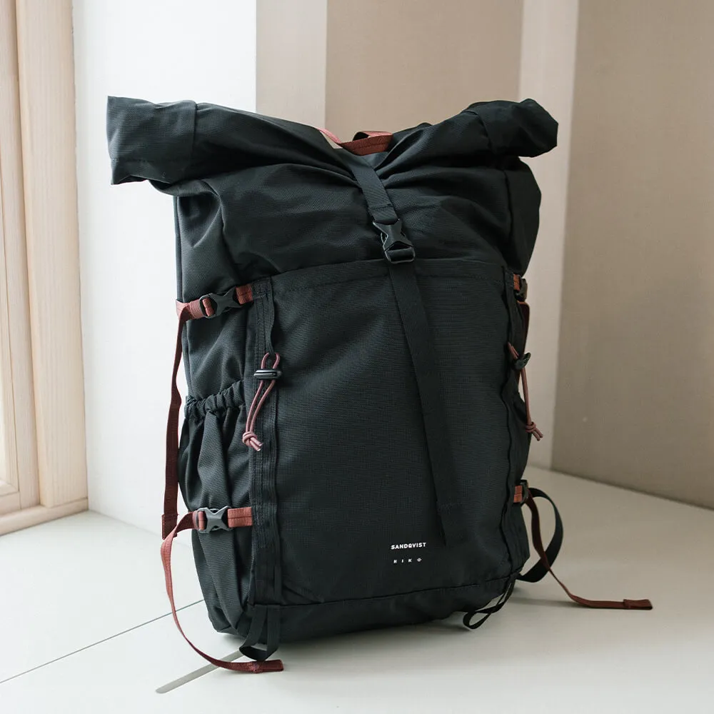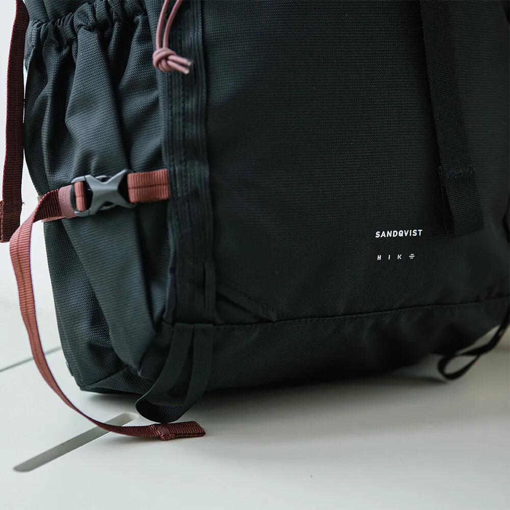 Туристический рюкзак Forest Hike черного цвета от шведского бренда Sandqvist. Мастерски выполнен из устойчивых материалов, с акцентом на технических деталях и функциональности.