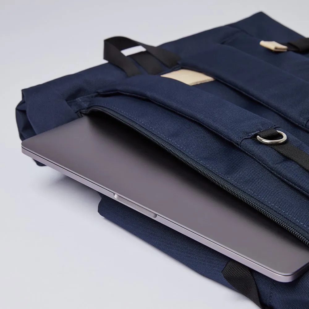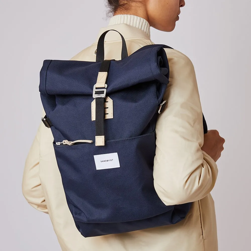Универсальный рюкзак ролл-топ Ilon синего цвета шведского бренда Sandqvist изготовлен из 100% переработанного полиэстера. Рюкзак из серии Urban Outdoor идеально подходит как для повседневных прогулок, так и для походов на выходных.