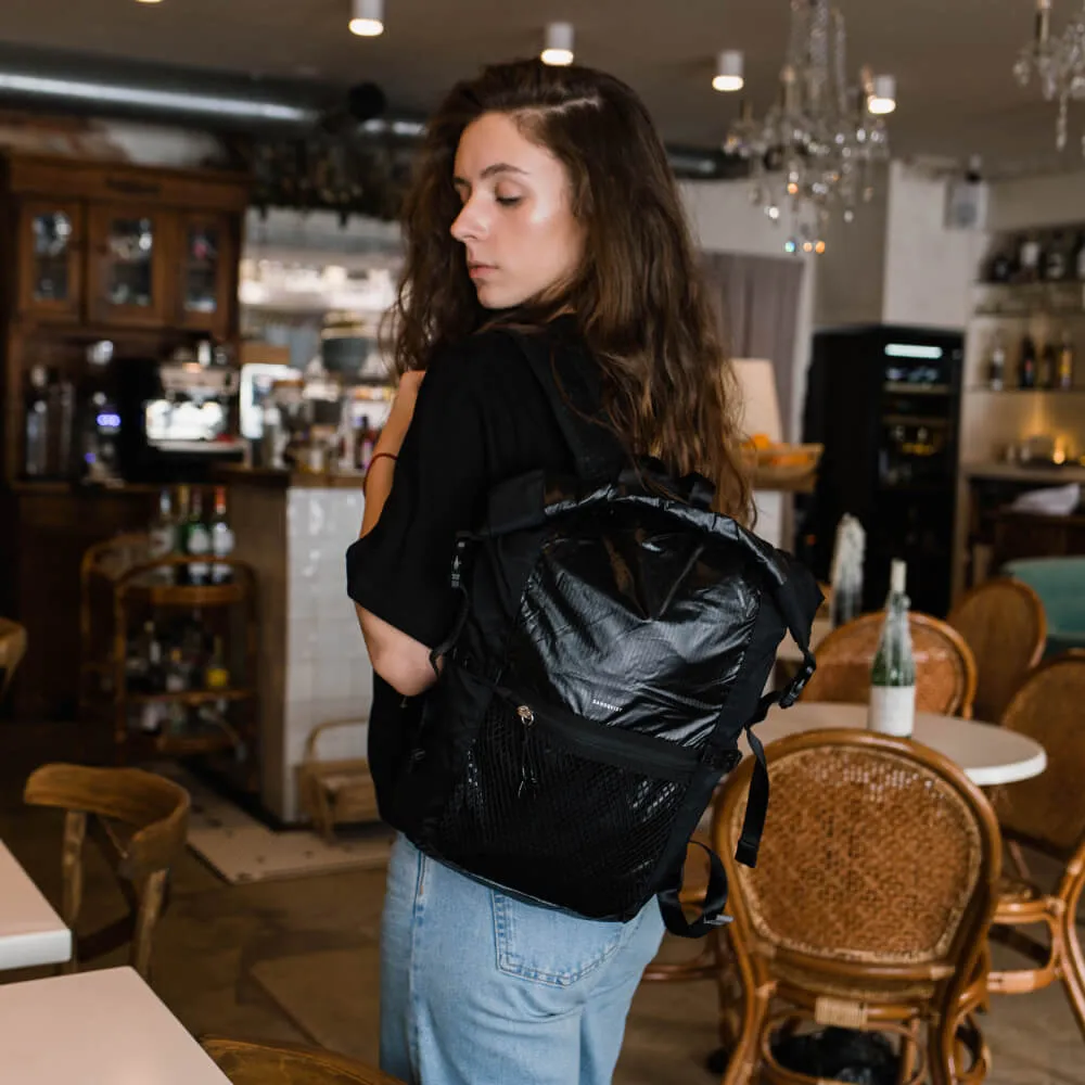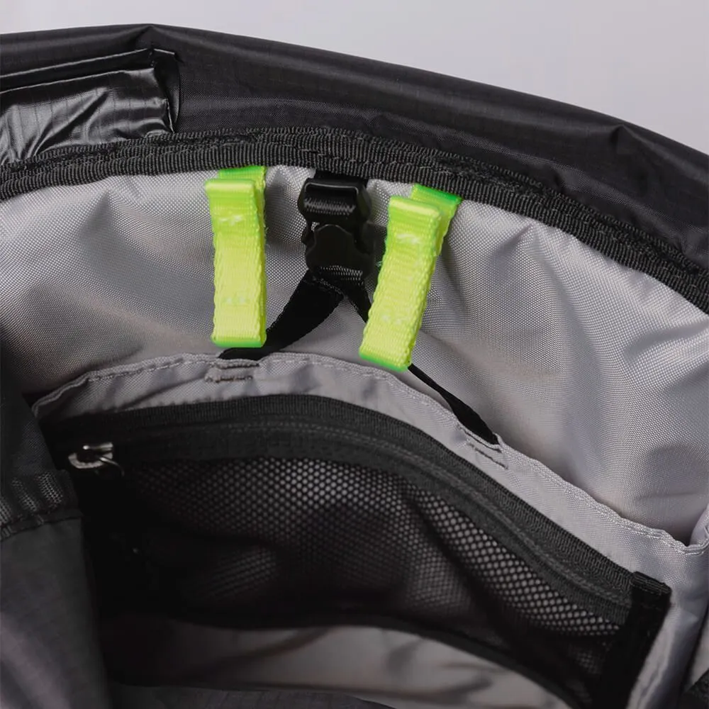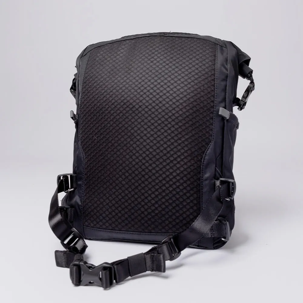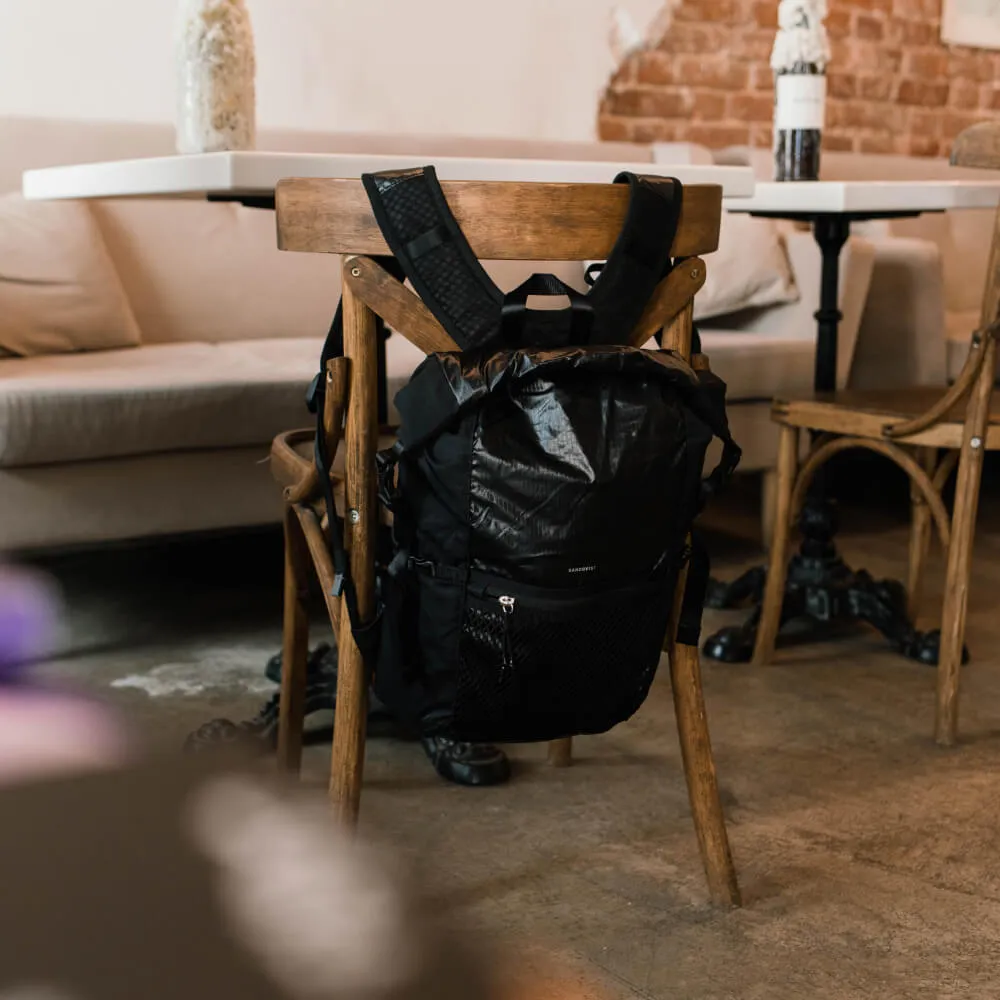 Черный роллтоп для бега Noa из серии Lightweight шведского бренда Sandqvist изготовлен из 100% переработанного нейлона рипстоп.