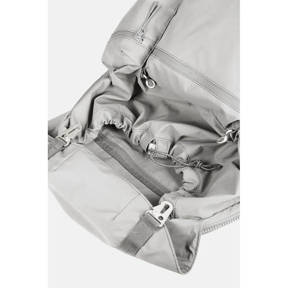 Вместительный рюкзак из непромокаемой мембраны с проклеенными молниями. Волшебники тканей, команда SH'U из Санкт-Петербурга, разработала этот рюкзак специально для путешествий и дополнили его тремя внешними карманами, а также индивидуальным отсеком на молнии.