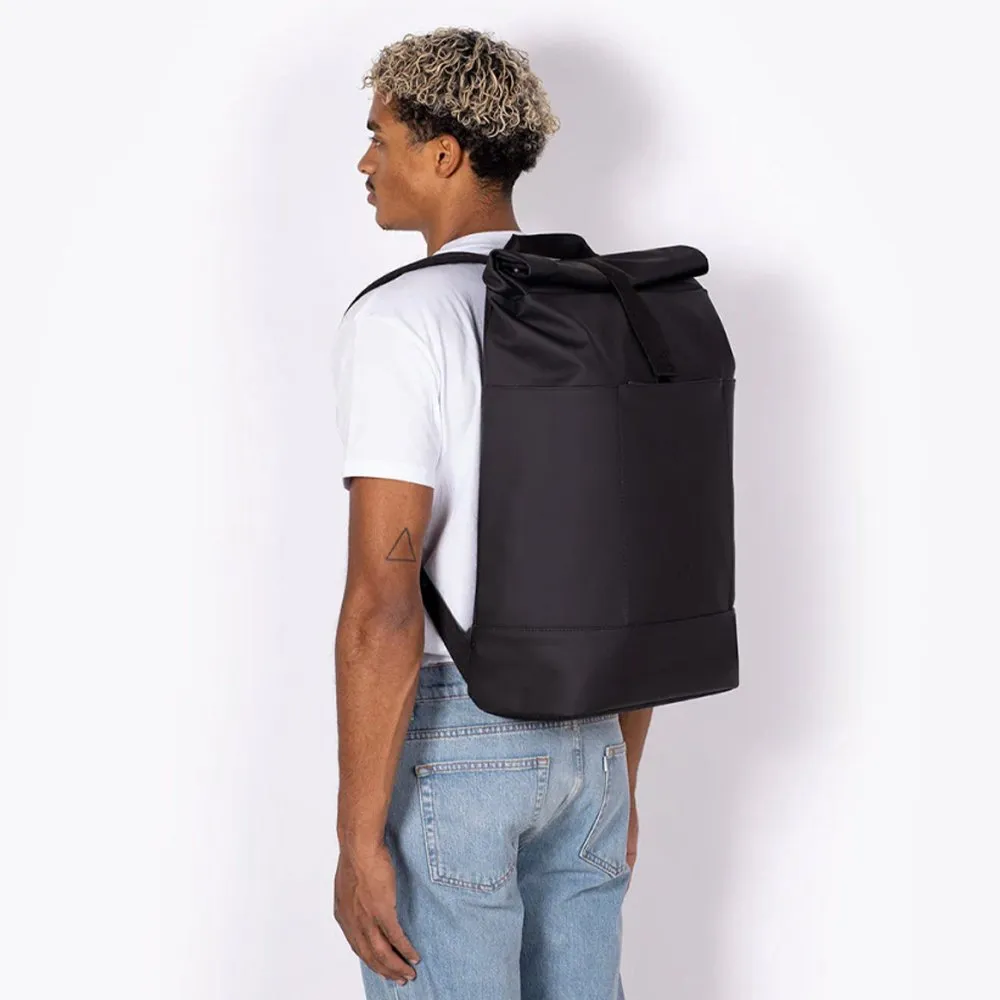 Минималистичный и универсальный рюкзак Ucon Acrobatics Hajo Large из серии Lotus в черном цвете. Ролл-топ закрывается застежкой-липучкой и позволяет удобно наполнять рюкзак. Аксессуар практичен в поездке на велосипеде или в дороге на работу.