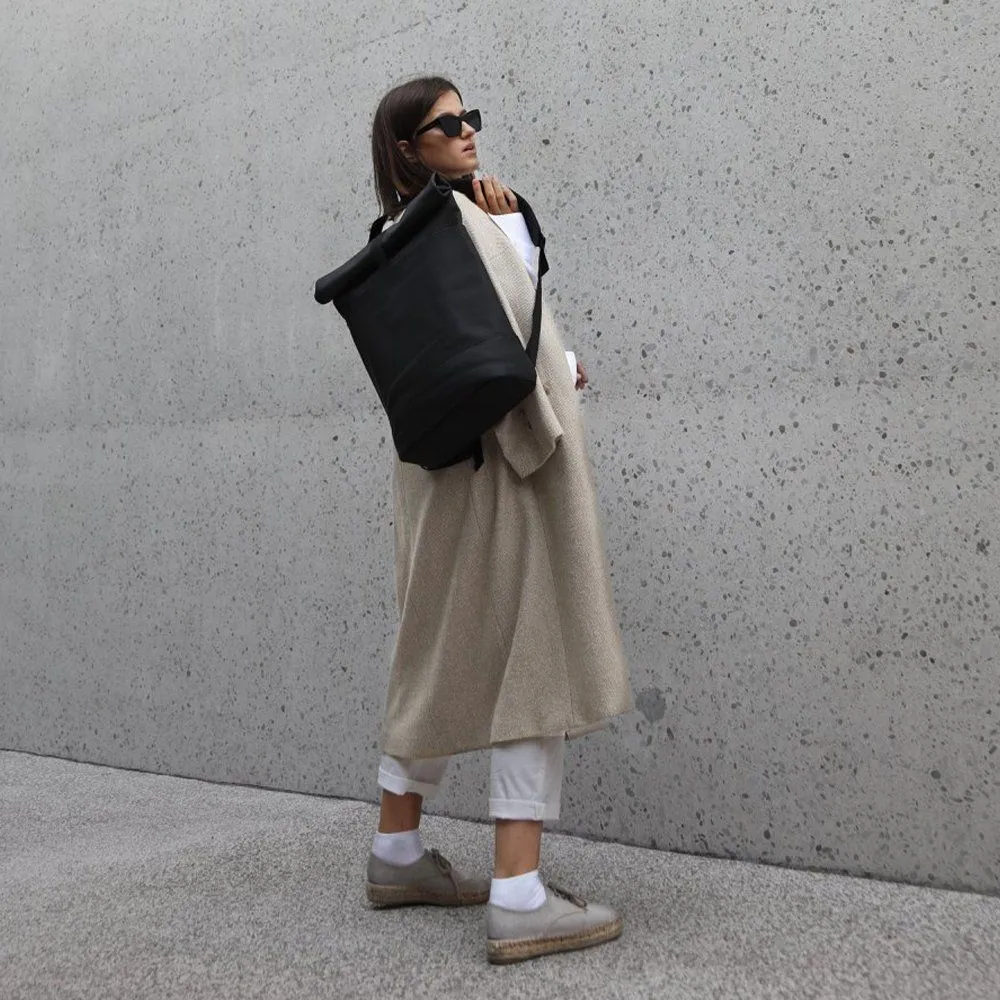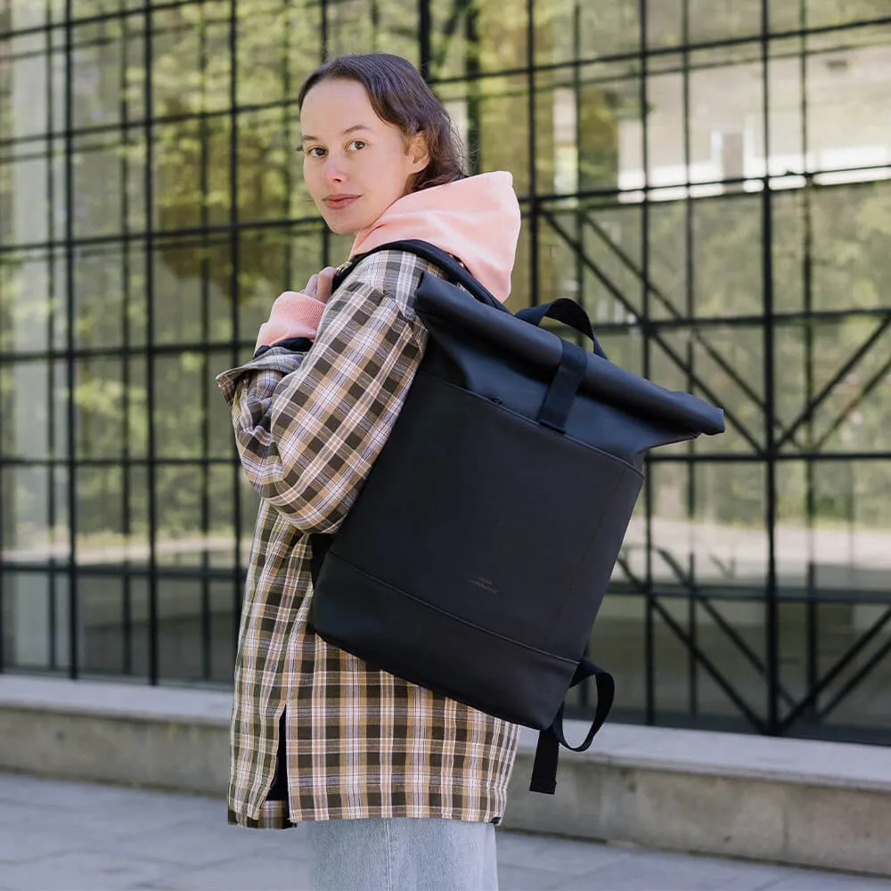Минималистичный и универсальный рюкзак Ucon Acrobatics Hajo Medium из серии Lotus в черном цвете. Ролл-топ закрывается застежкой-липучкой и позволяет удобно наполнять рюкзак. Аксессуар практичен в поездке на велосипеде или в дороге на работу.