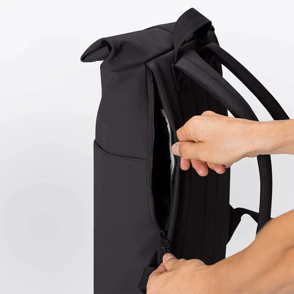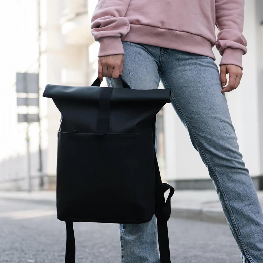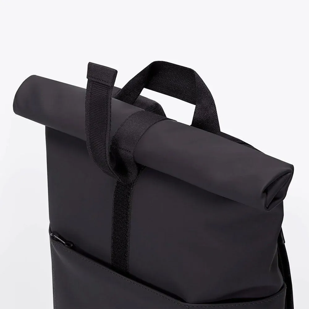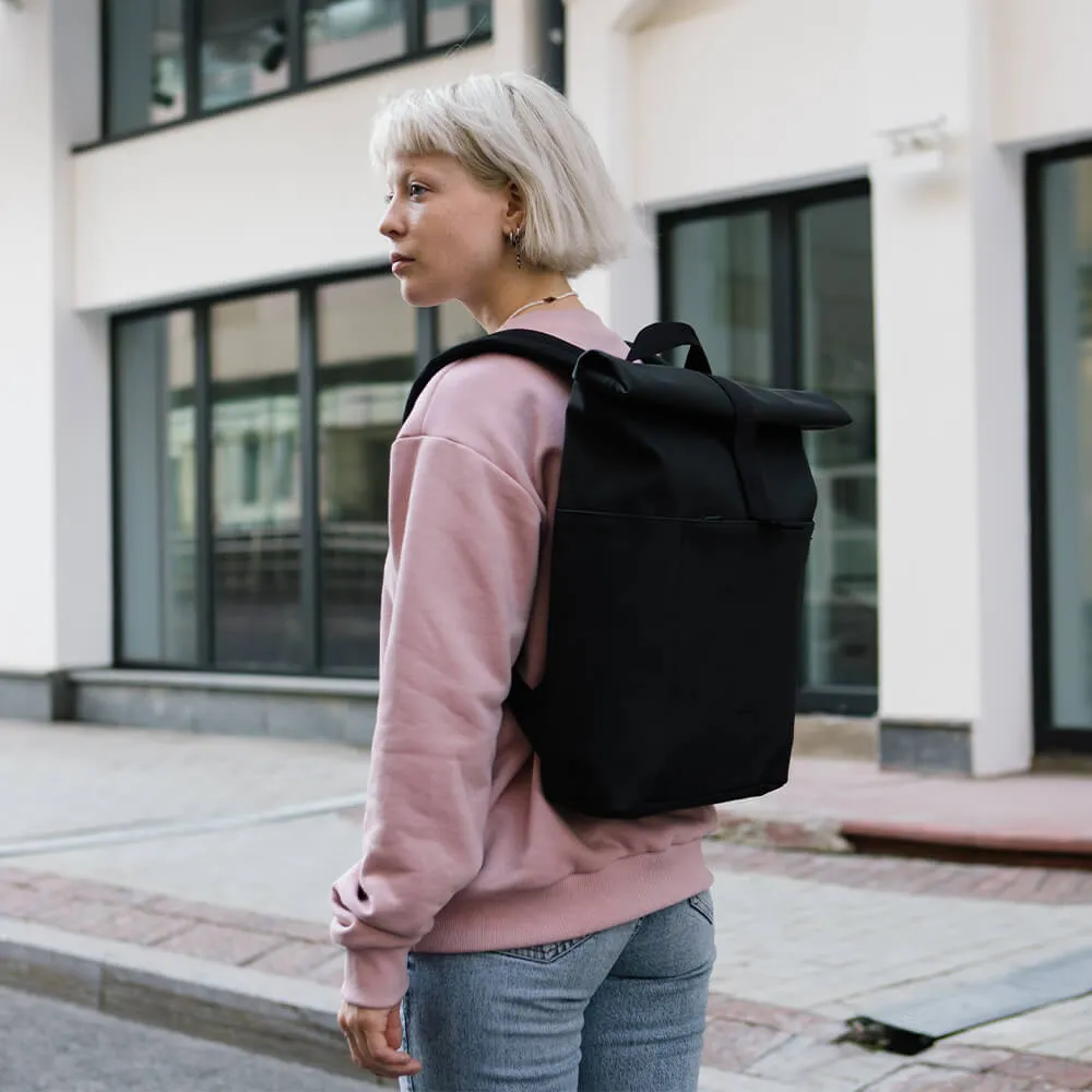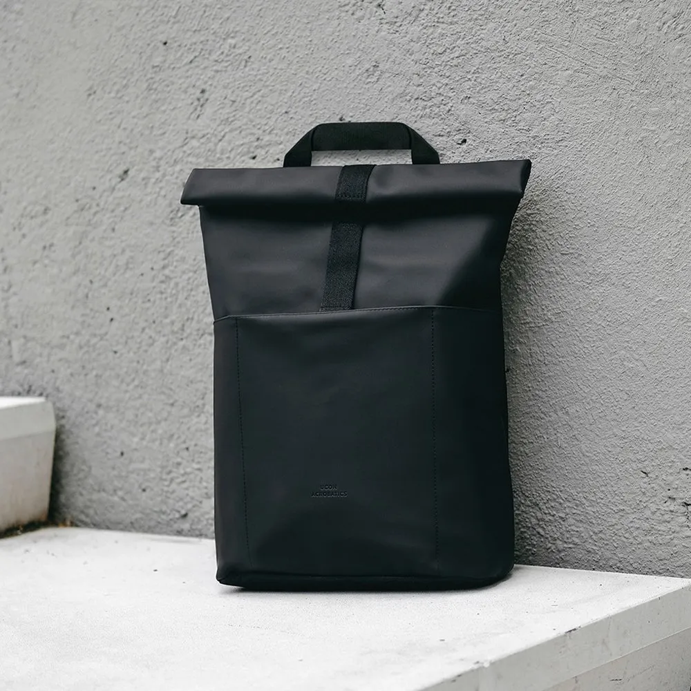 Минималистичный и универсальный рюкзак Ucon Acrobatics Hajo Mini из серии Lotus в черном цвете. Ролл-топ закрывается застежкой-липучкой и позволяет удобно наполнять рюкзак. Аксессуар практичен в поездке на велосипеде или в дороге на работу.