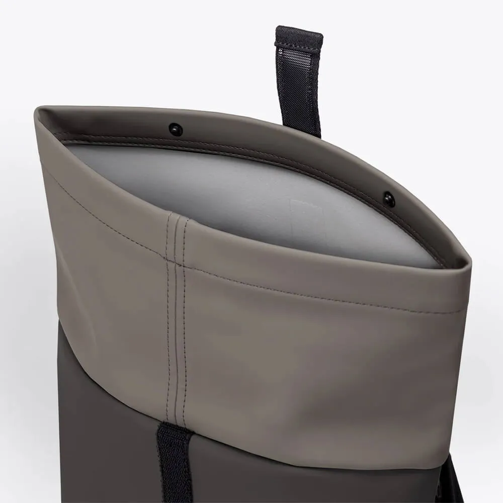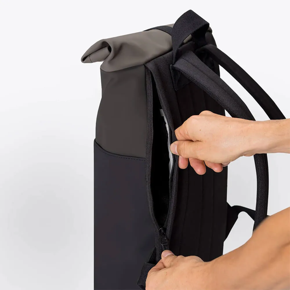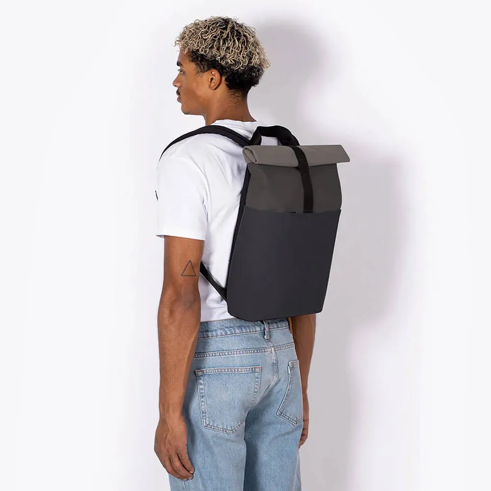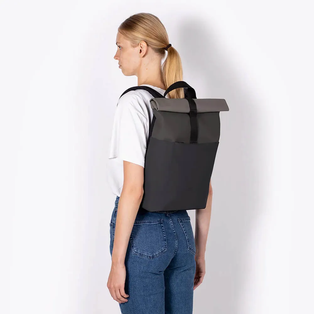 Минималистичный и универсальный рюкзак Ucon Acrobatics Hajo Mini из серии Lotus в цвете Asphalt - Black. Ролл-топ закрывается застежкой-липучкой и позволяет удобно наполнять рюкзак. Аксессуар практичен в поездке на велосипеде или в дороге на работу.