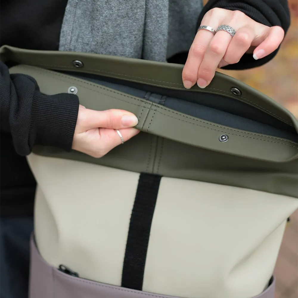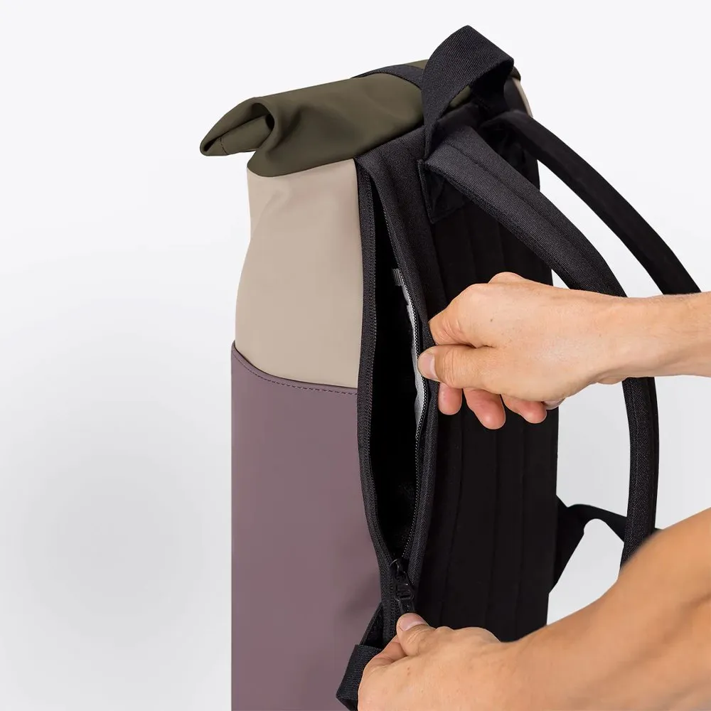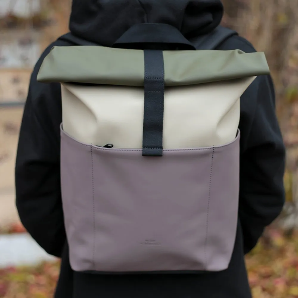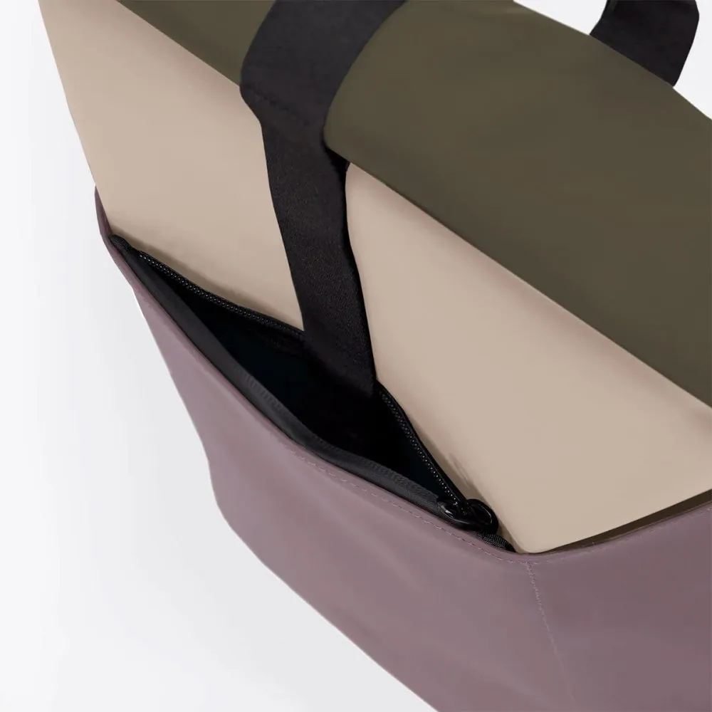 Минималистичный и универсальный рюкзак Ucon Acrobatics Hajo Mini из серии Lotus в цвете Nude - Grape. Ролл-топ закрывается застежкой-липучкой и позволяет удобно наполнять рюкзак. Аксессуар практичен в поездке на велосипеде или в дороге на работу.