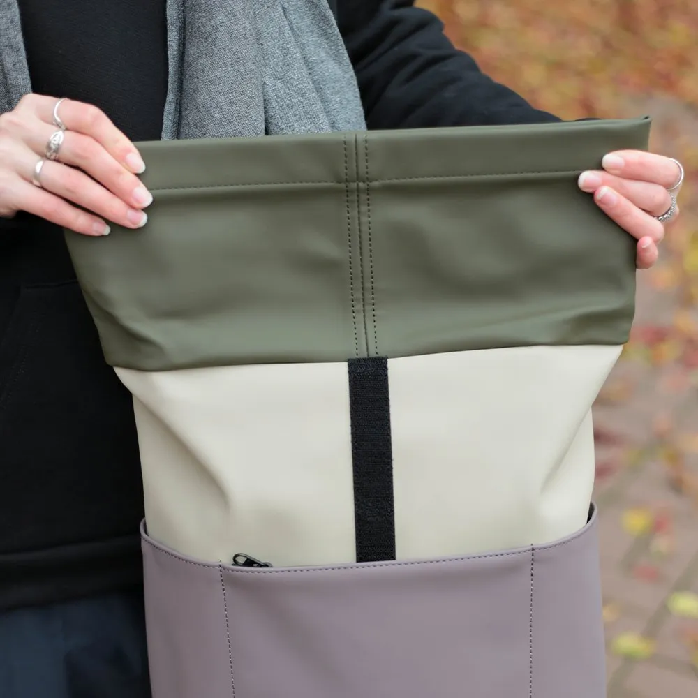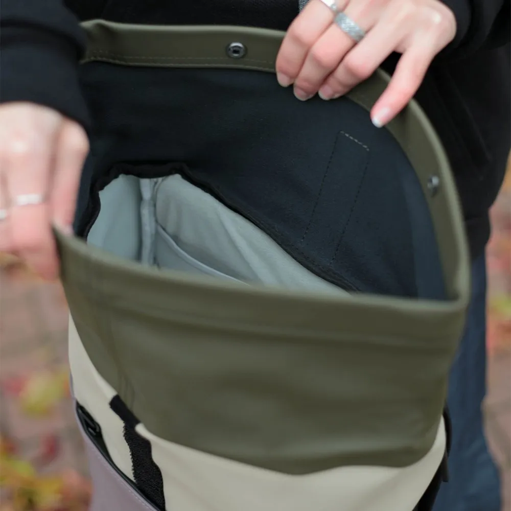 Ролл-топ конструкция закрывается на застежку-липучку.