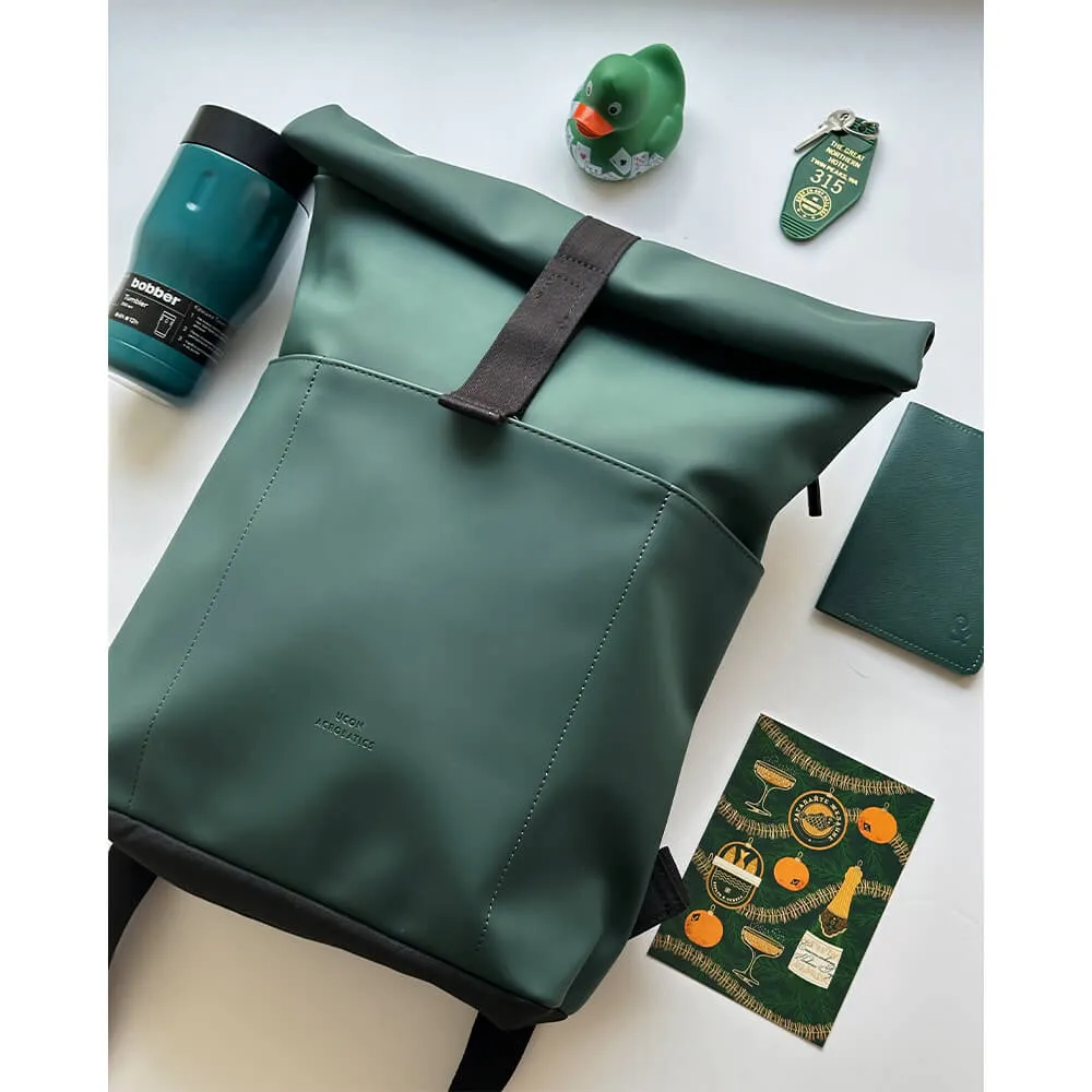 Минималистичный и универсальный рюкзак Ucon Acrobatics Hajo Mini из серии Lotus в цвете Pine Green. Ролл-топ закрывается застежкой-липучкой и позволяет удобно наполнять рюкзак. Аксессуар практичен в поездке на велосипеде или в дороге на работу.