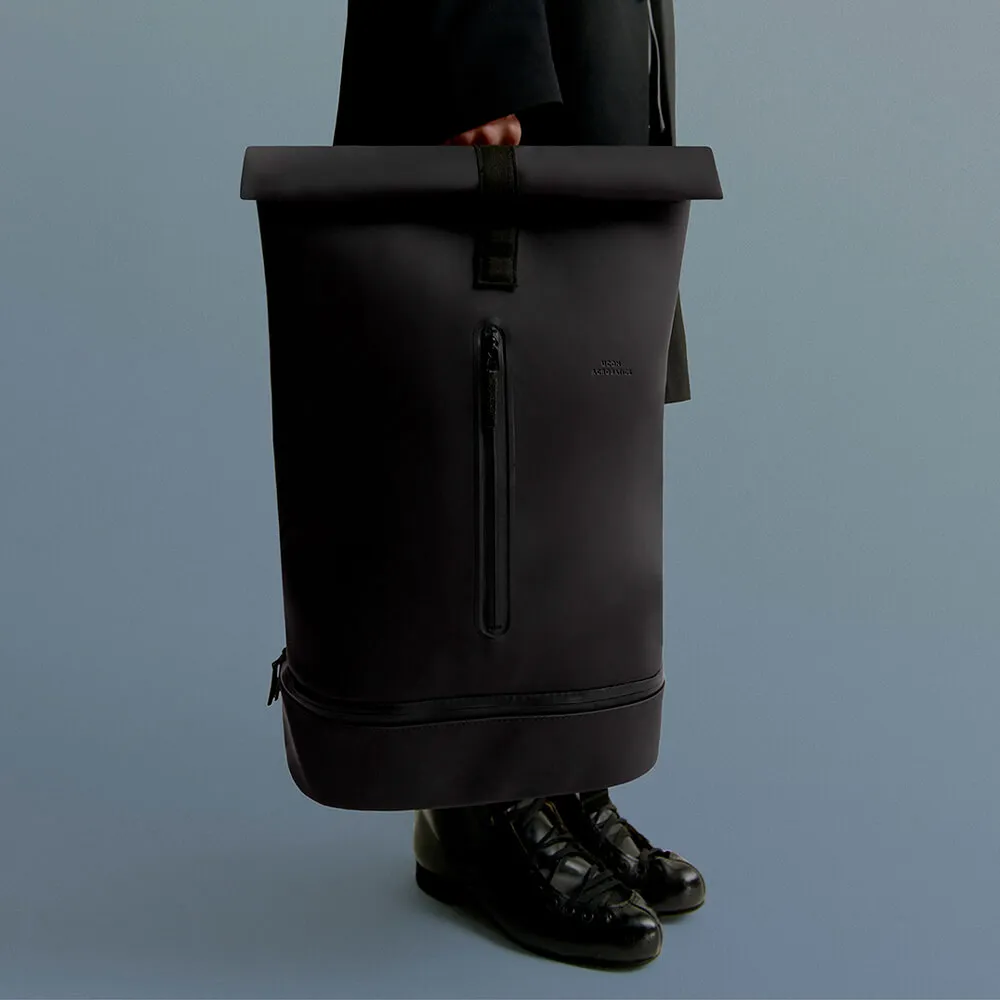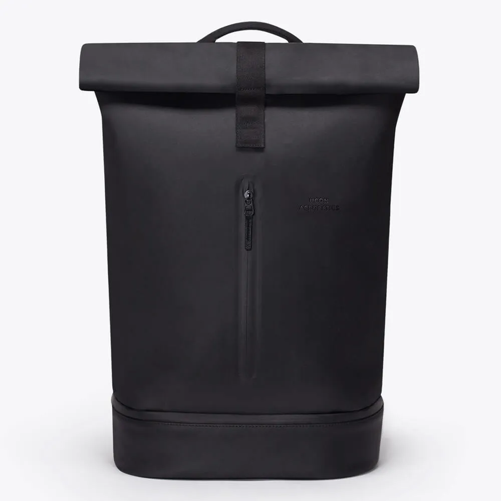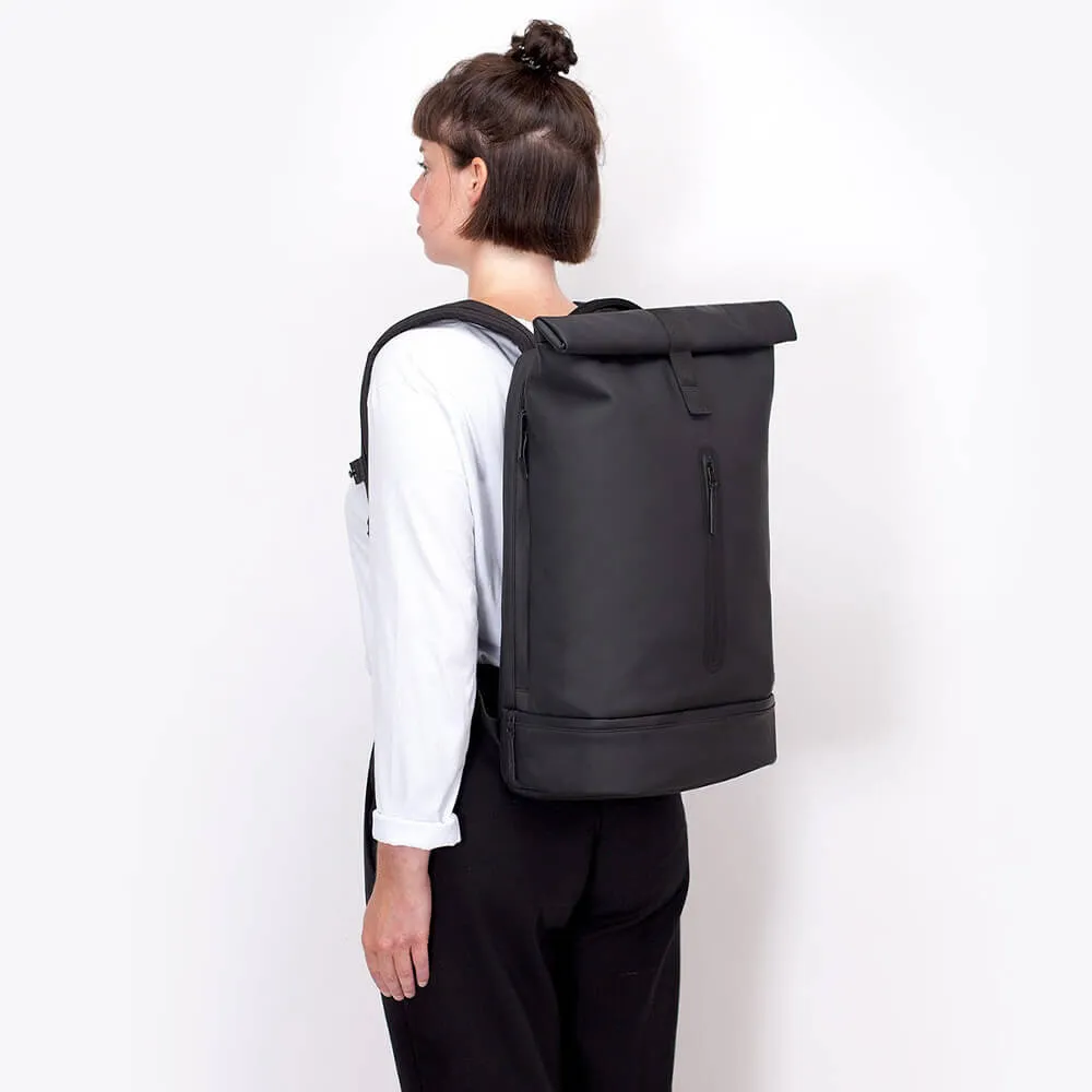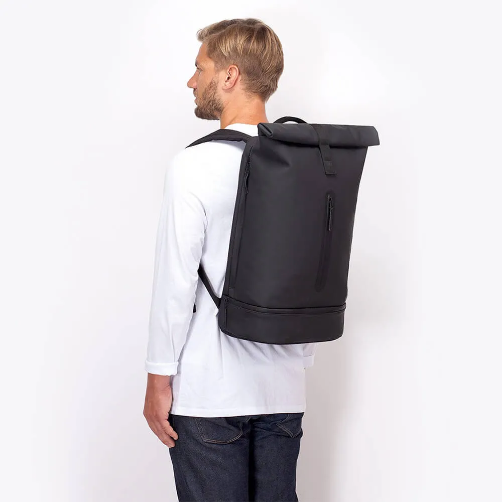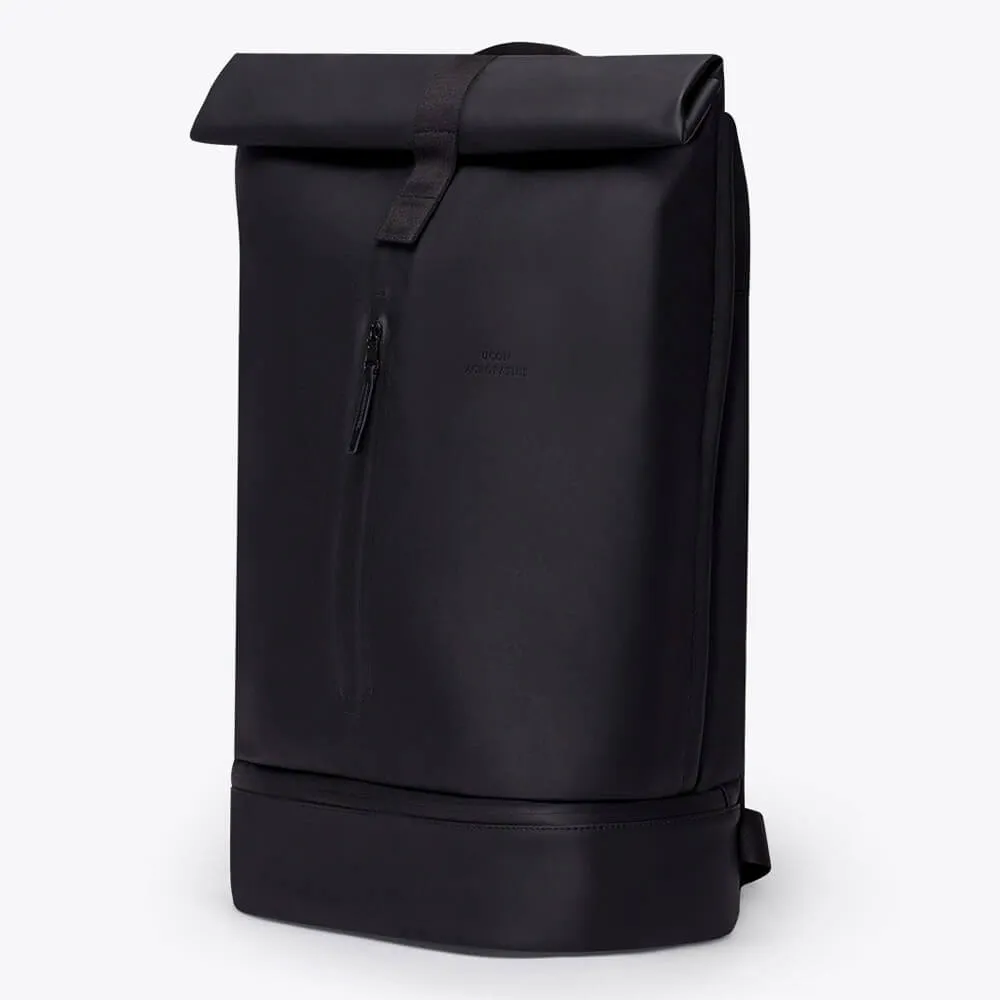 Многофункциональный рюкзак Ucon Acrobatics Hajo Pro из серии Lotus в черном цвете. Ролл-топ закрывается застежкой на магните и позволяет удобно наполнять рюкзак. Аксессуар практичен в поездке на велосипеде или в дороге на работу.