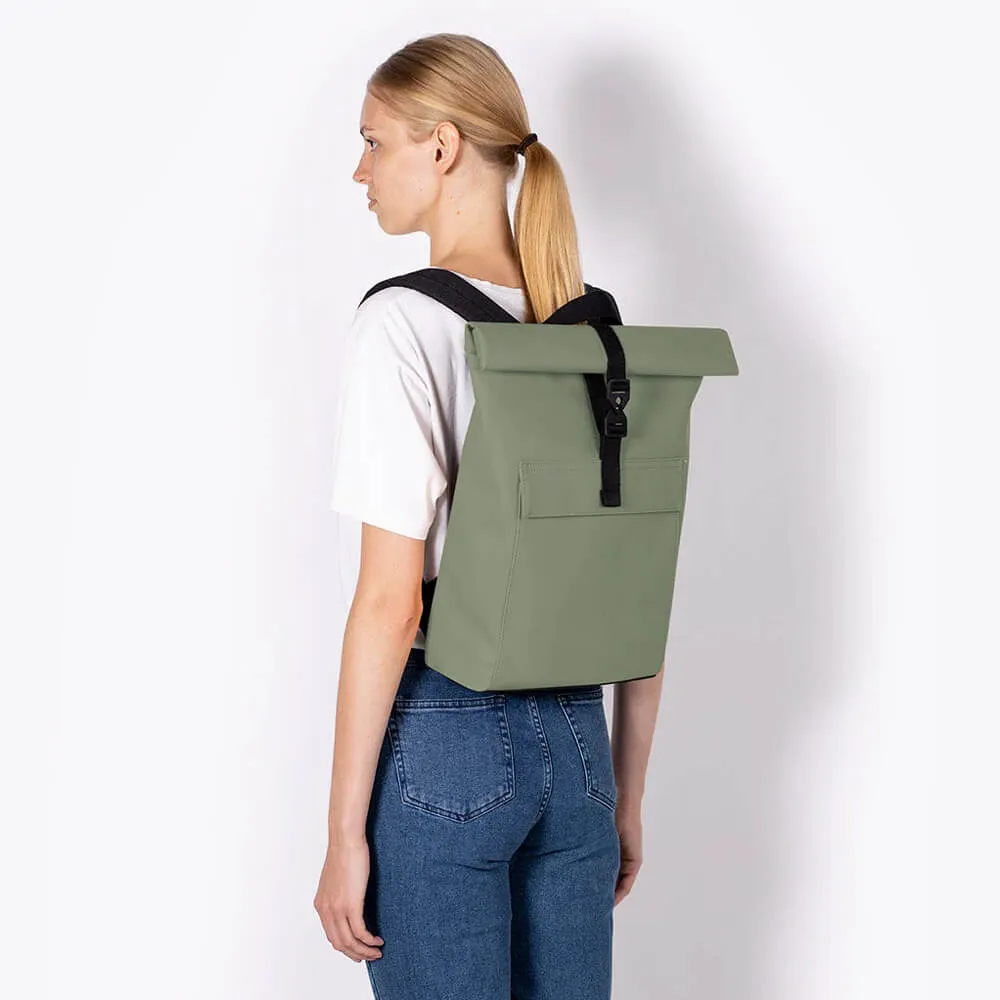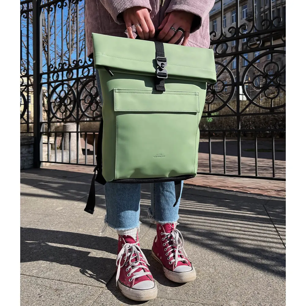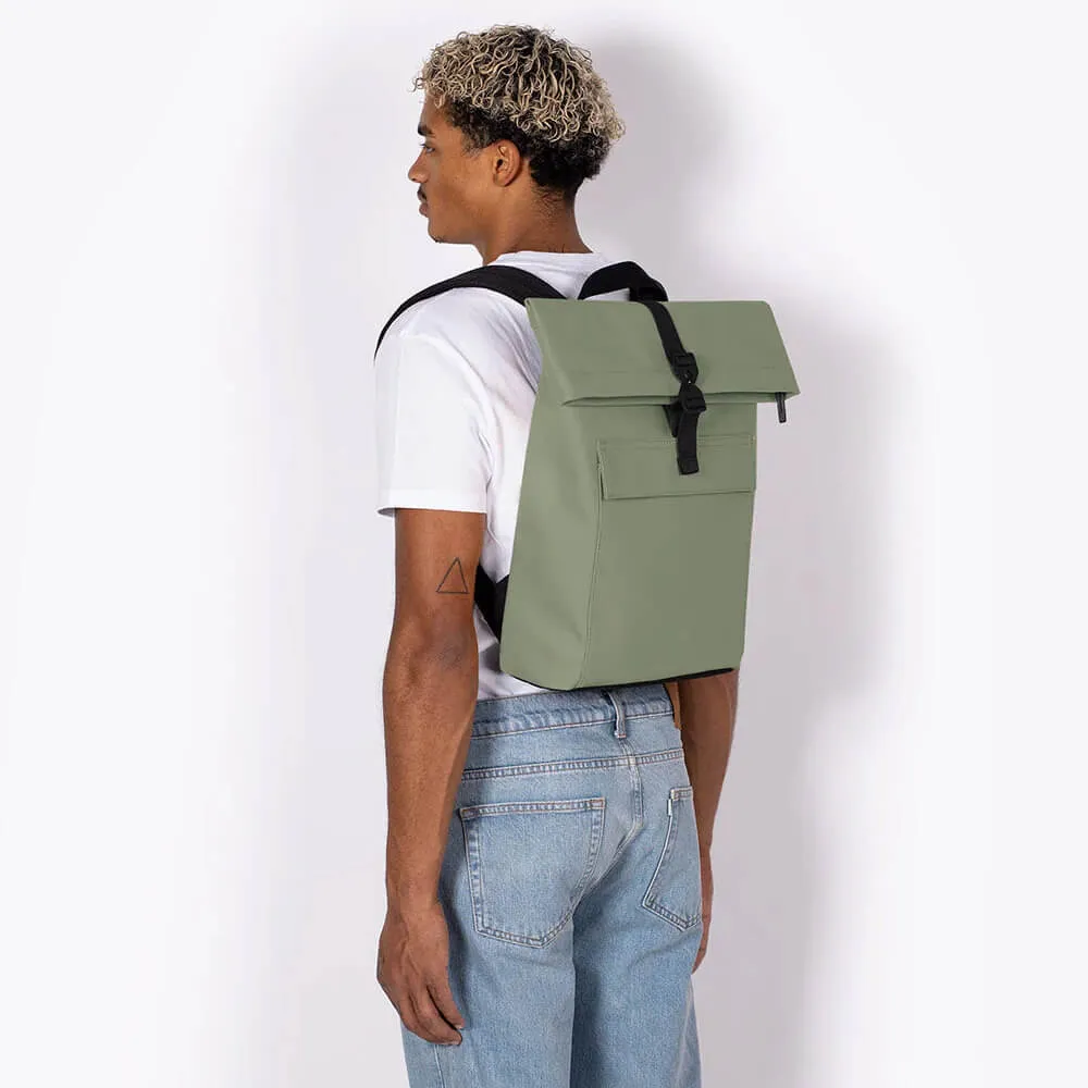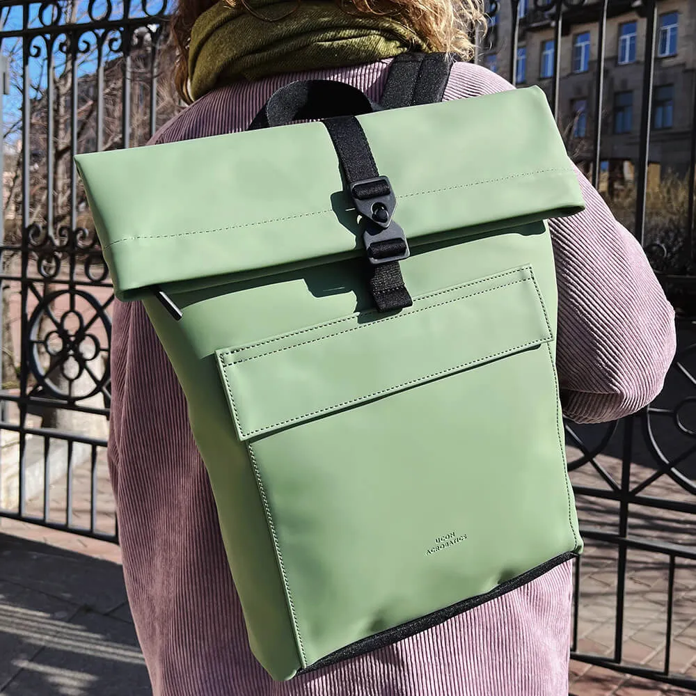 Cовременный рюкзак с минималистичным дизайном Ucon Acrobatics Jasper Mini из серии Lotus в цвете Sage Green. Он подойдет для повседневного ношения, а также его можно брать с собой в самолет.