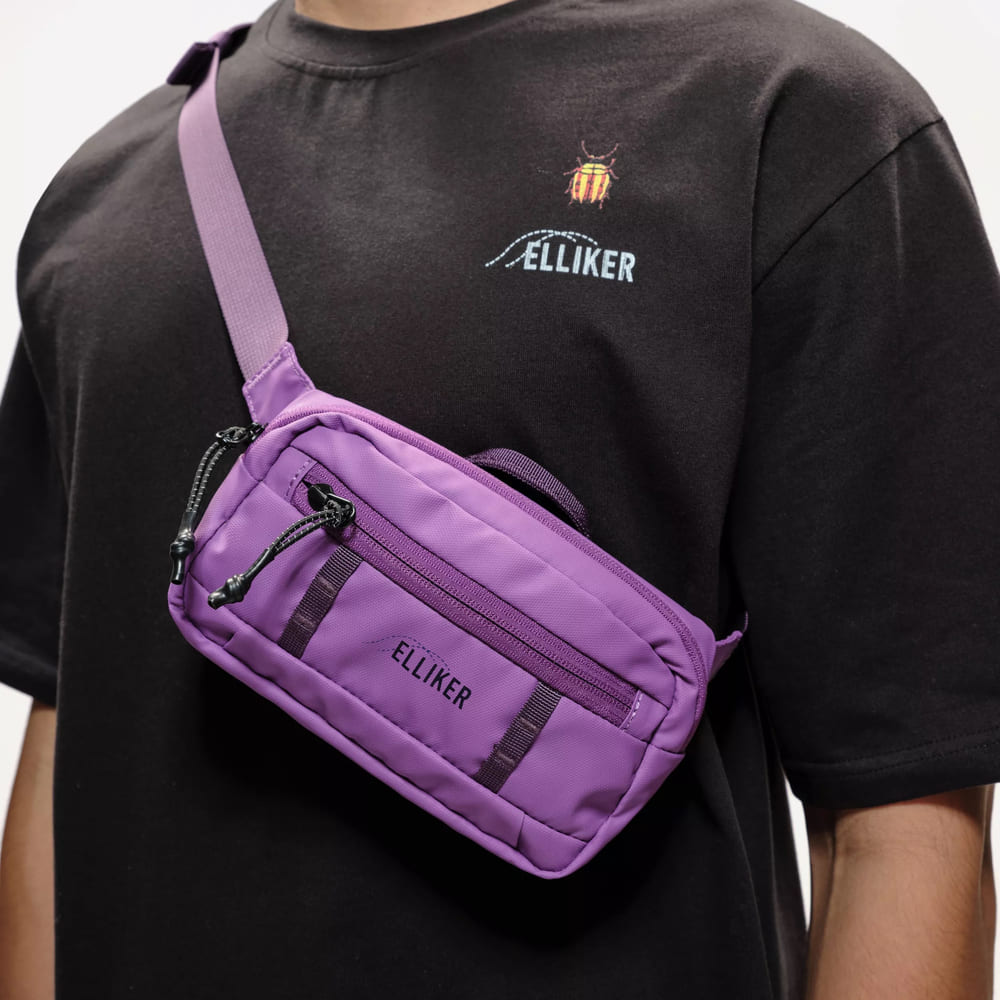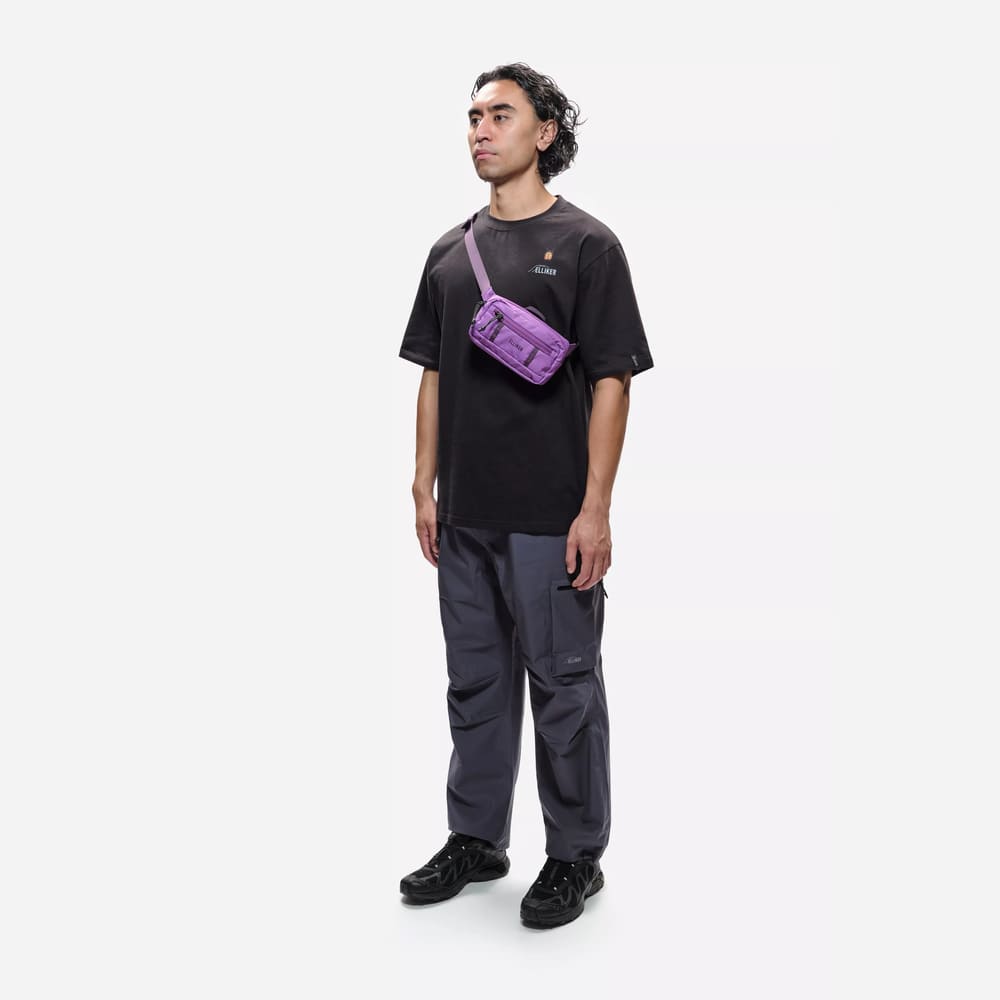 Небольшая прочная сумка с водоотталкивающей пропиткой в красивом фиолетовом цвете. Можно носить как на поясе, так и через плечо.