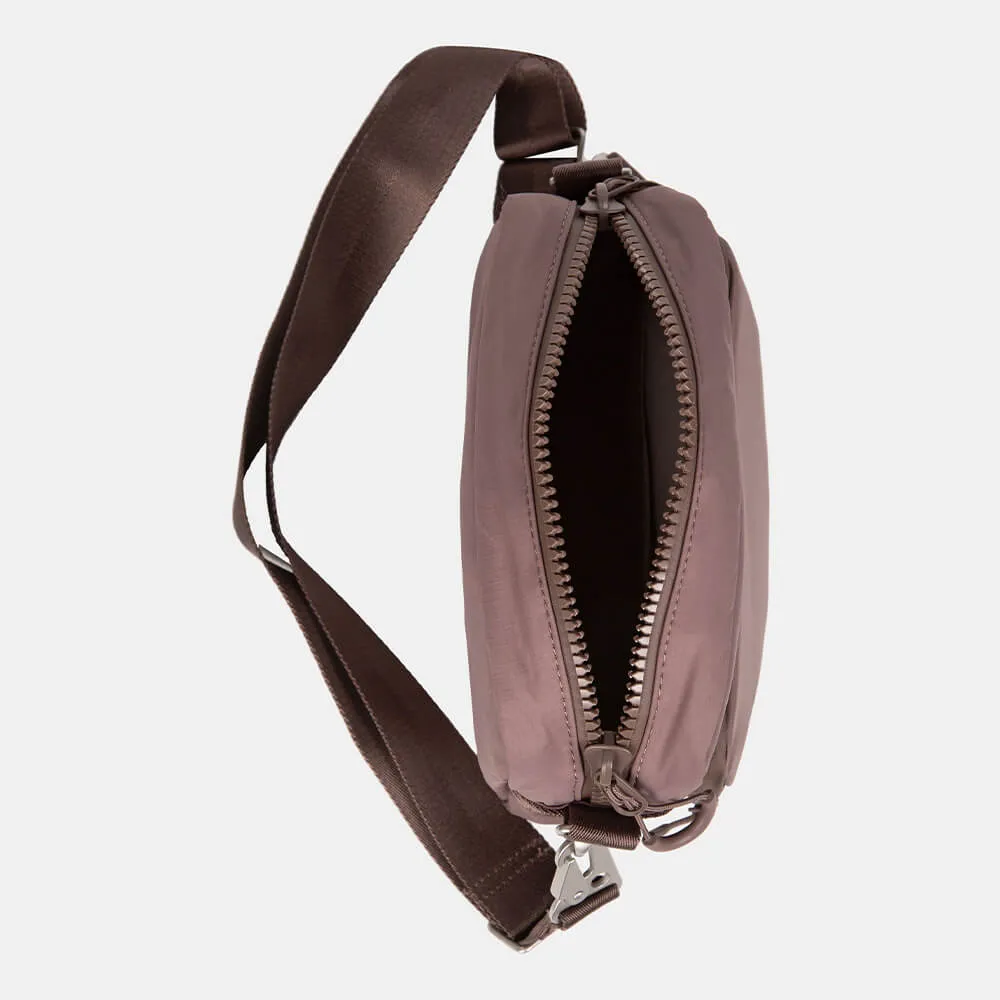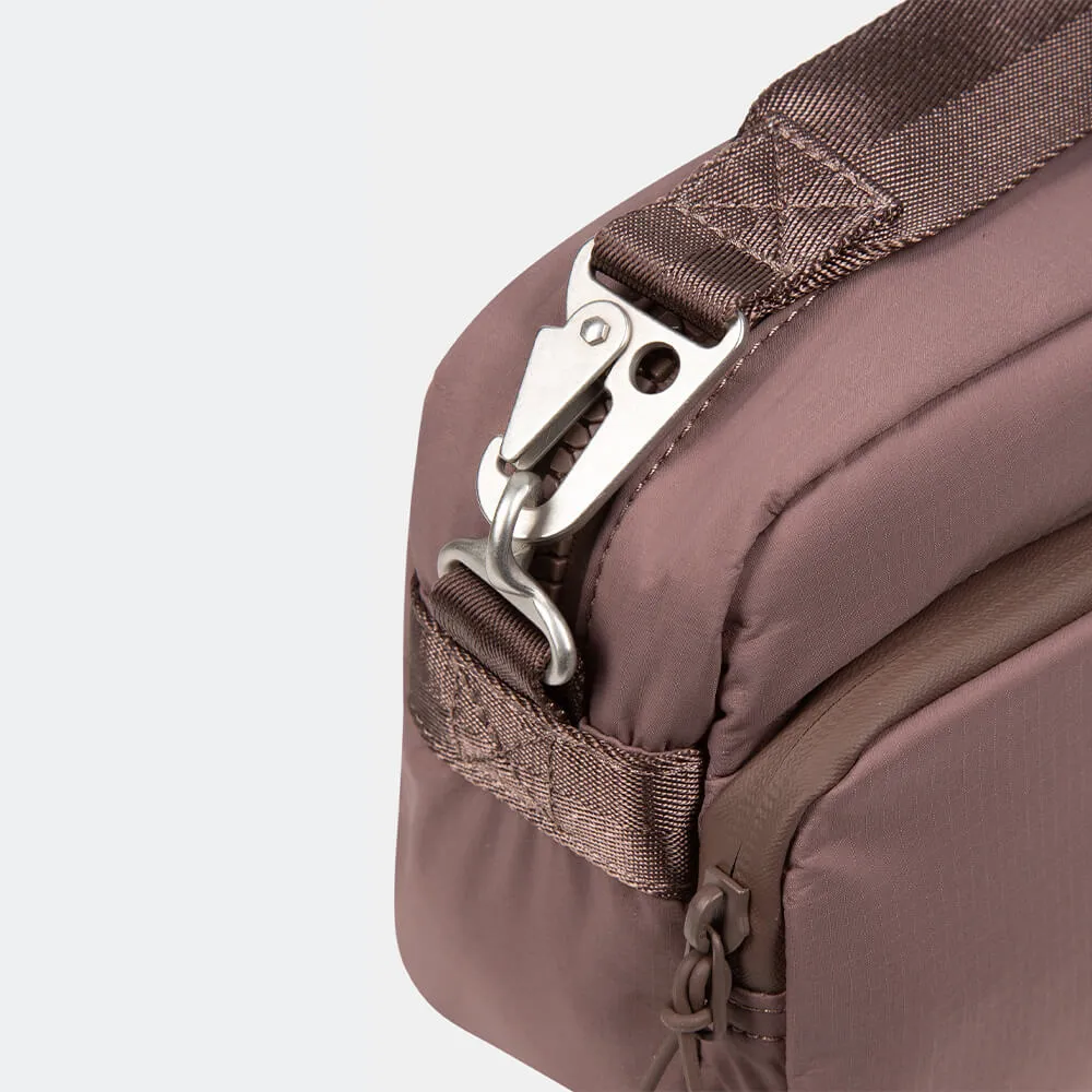 Универсальная небольшая коричневая сумка SHU для города и путешествий сделана из непромокаемой мембранной ткани.