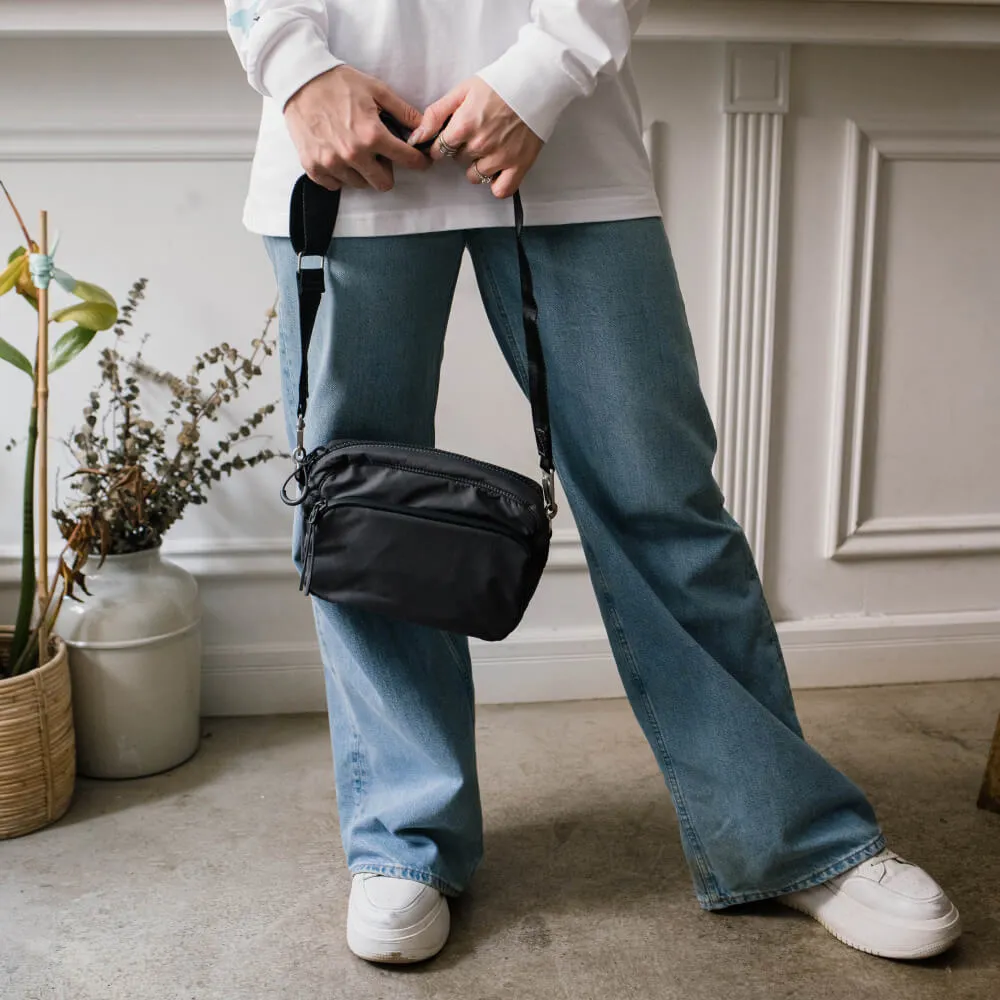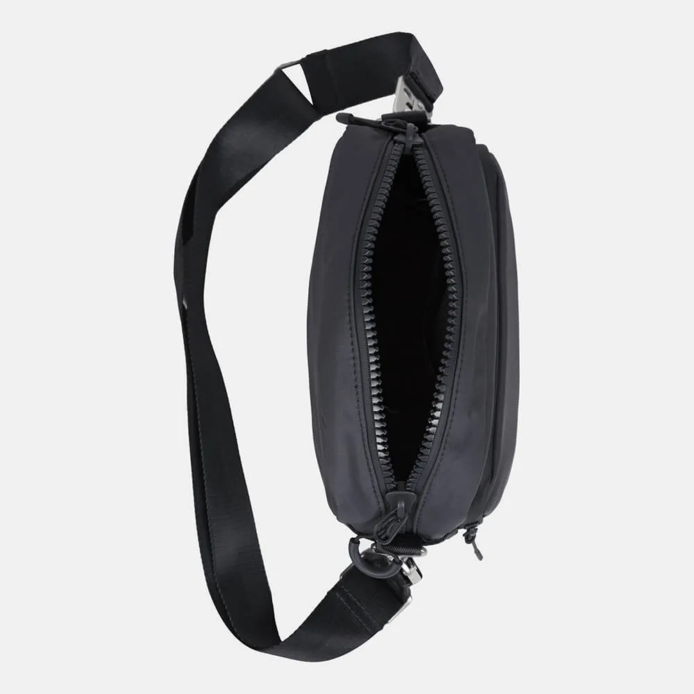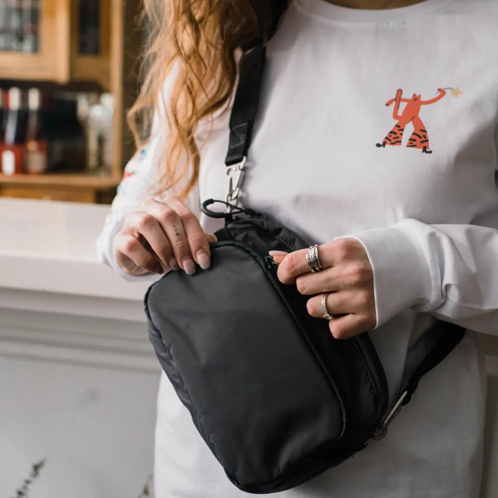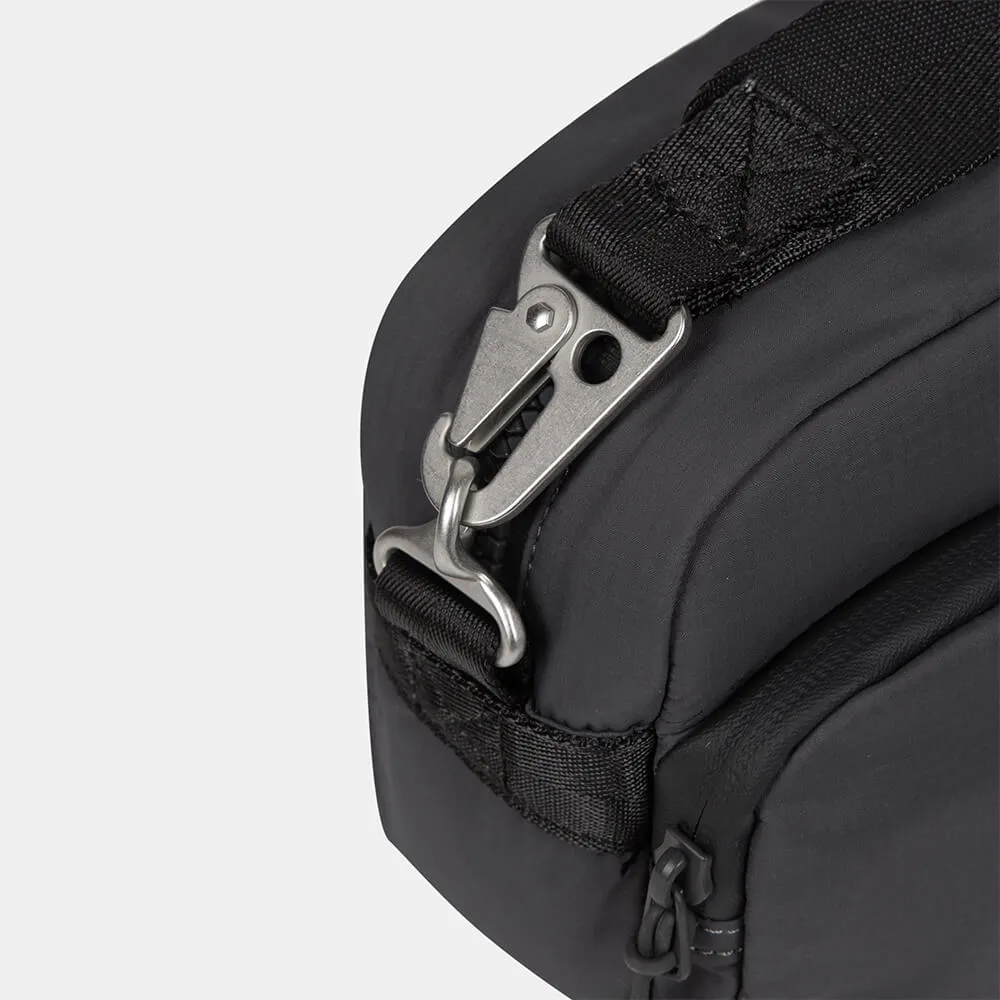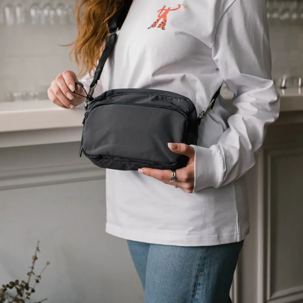 Универсальная небольшая темно-серая сумка SHU для города и путешествий сделана из непромокаемой мембранной ткани.