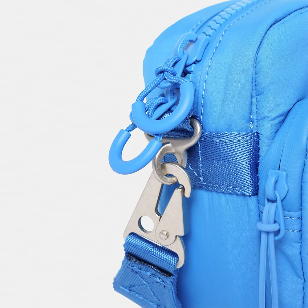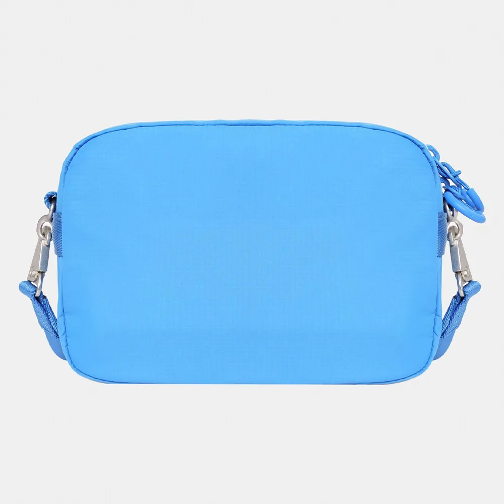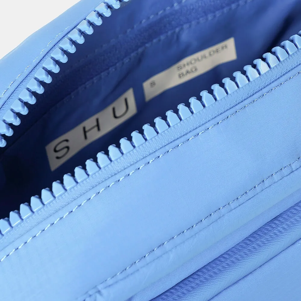 Универсальная небольшая синяя сумка SHU для города и путешествий сделана из непромокаемой мембранной ткани.