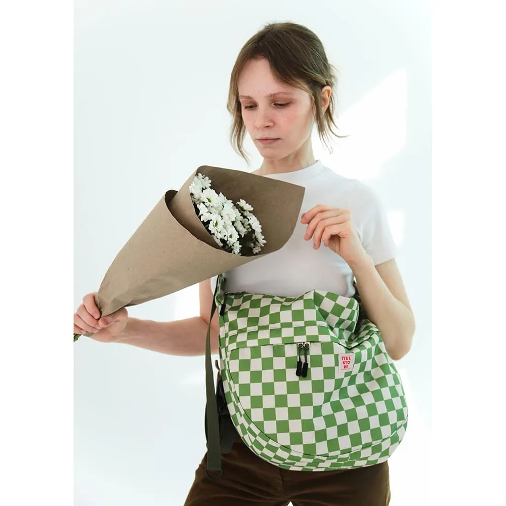 Вместительная сумка Le sac (лесак: сумка-мешок) перетекающей формы с дополнительным фиксатором на ремне, для езды на велосипеде и не только.