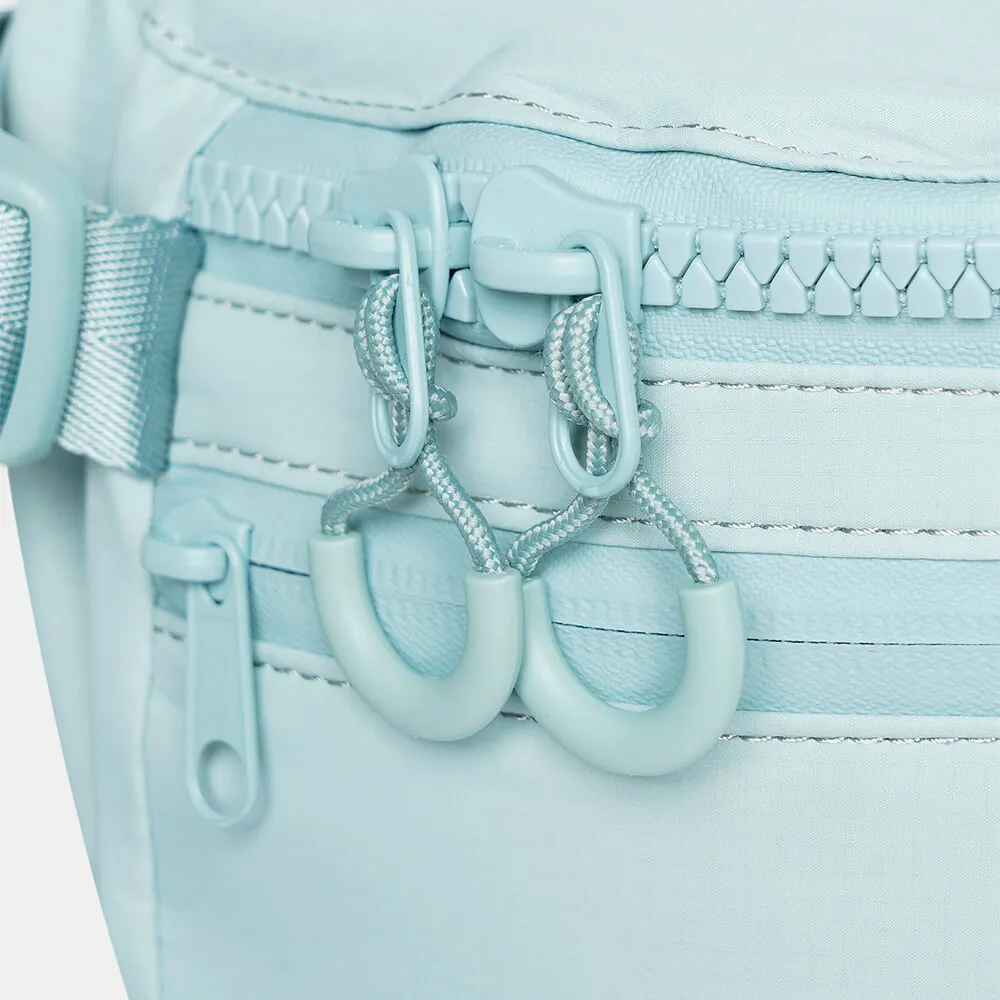 - Широкий регулируемый ремень позволяет носить сумку на поясе или на плече.