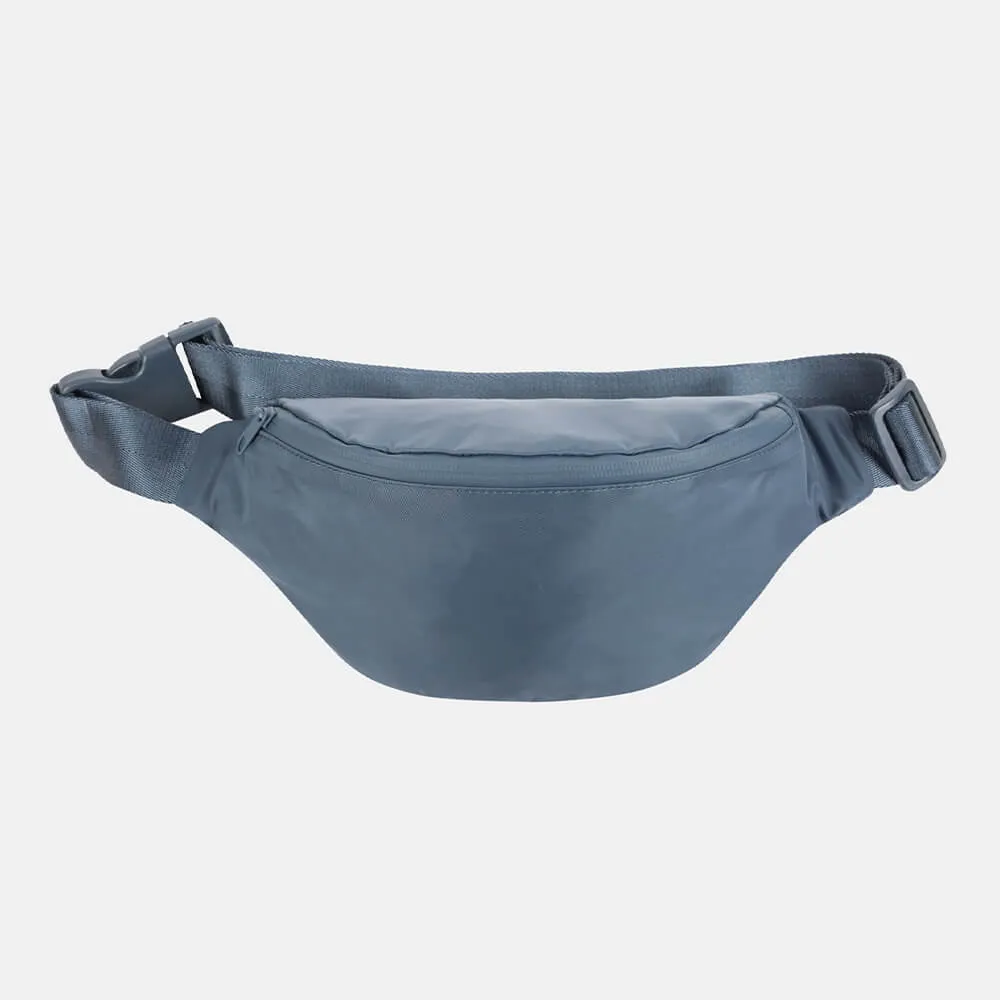 Компактная и эргономичная поясная сумка SHU синего цвета из непромокаемой мембраны с проклеенной молнией. Модель разработана таким образом, что ее можно носить на поясе или через плечо.