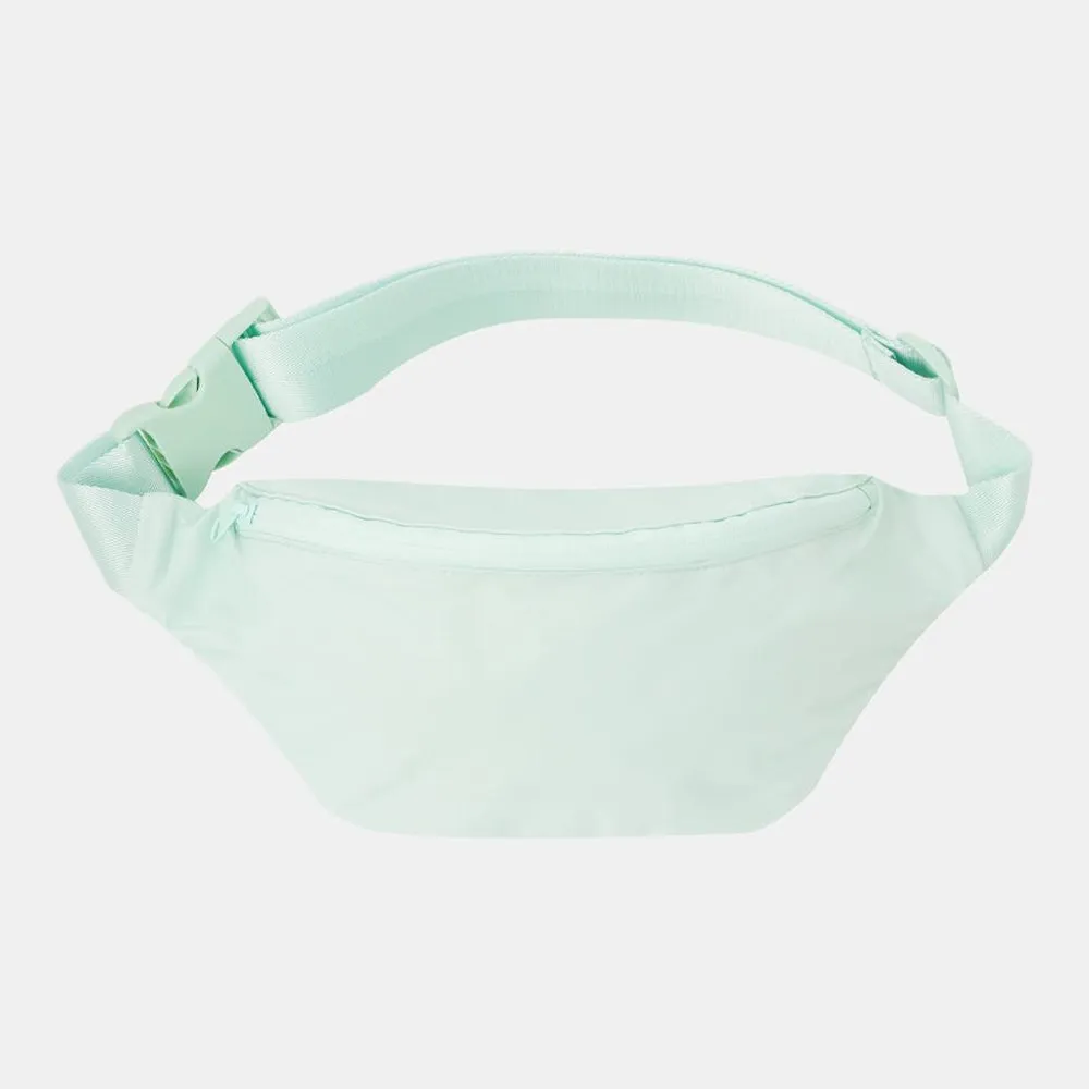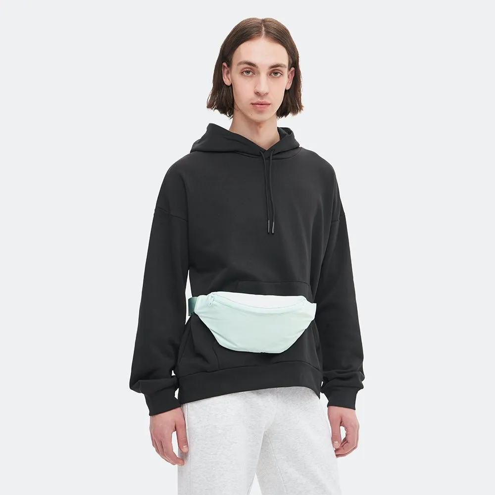 Компактная и эргономичная поясная сумка SHU ментолового цвета из непромокаемой мембраны с проклеенной молнией. Модель разработана таким образом, что ее можно носить на поясе или через плечо.