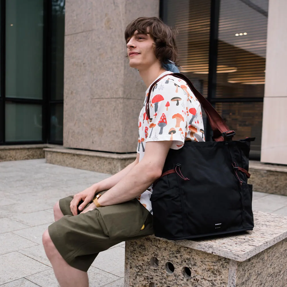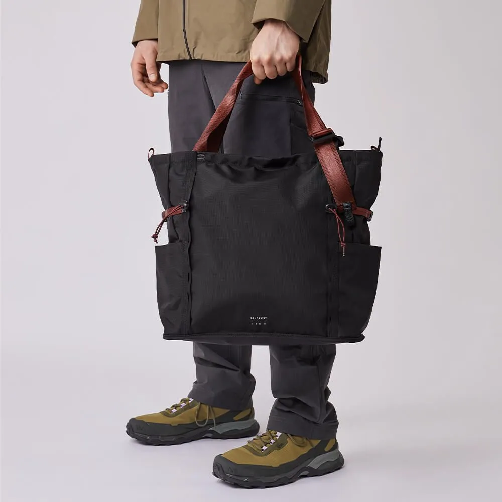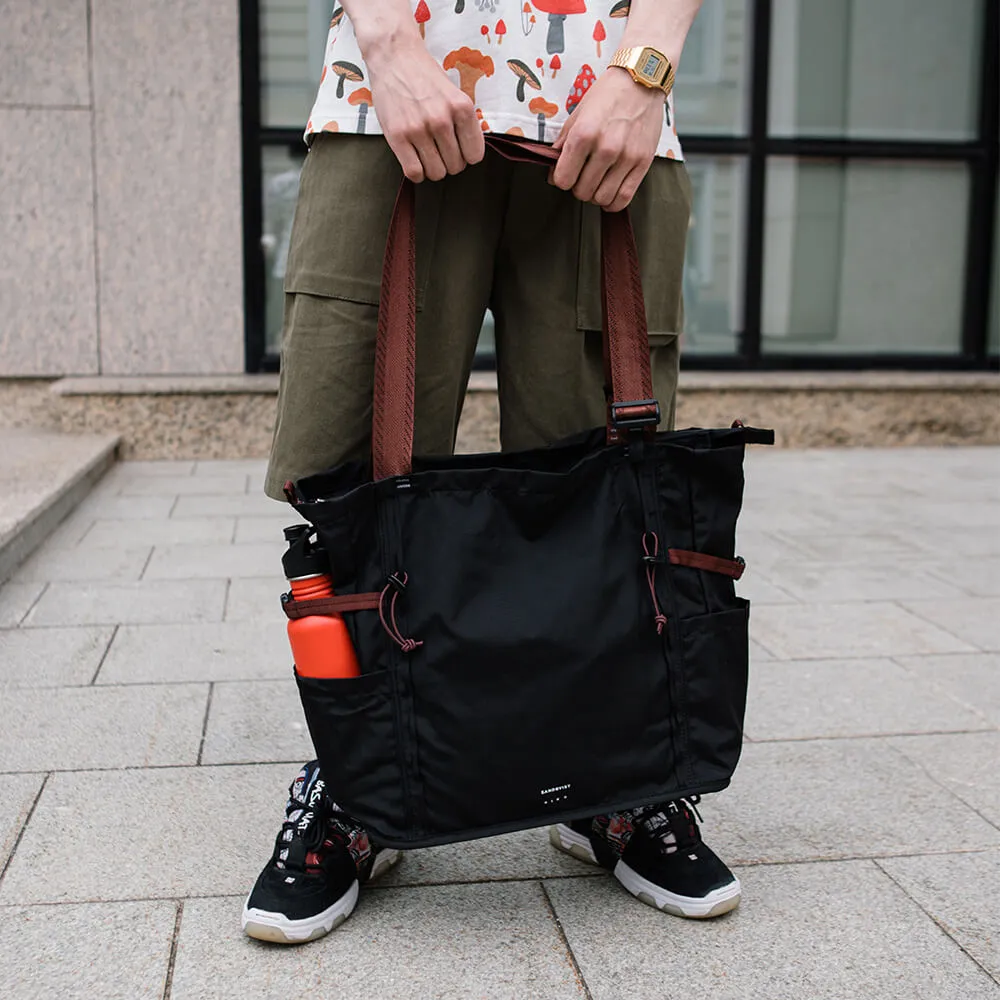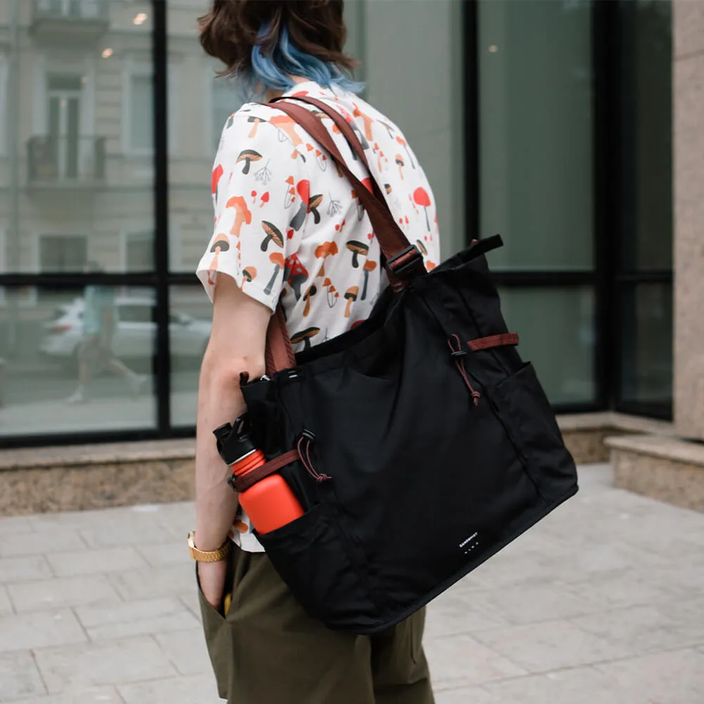 Функциональная большая черная сумка-тотут River Hike, искусно изготовленная из экологически чистых тканей.