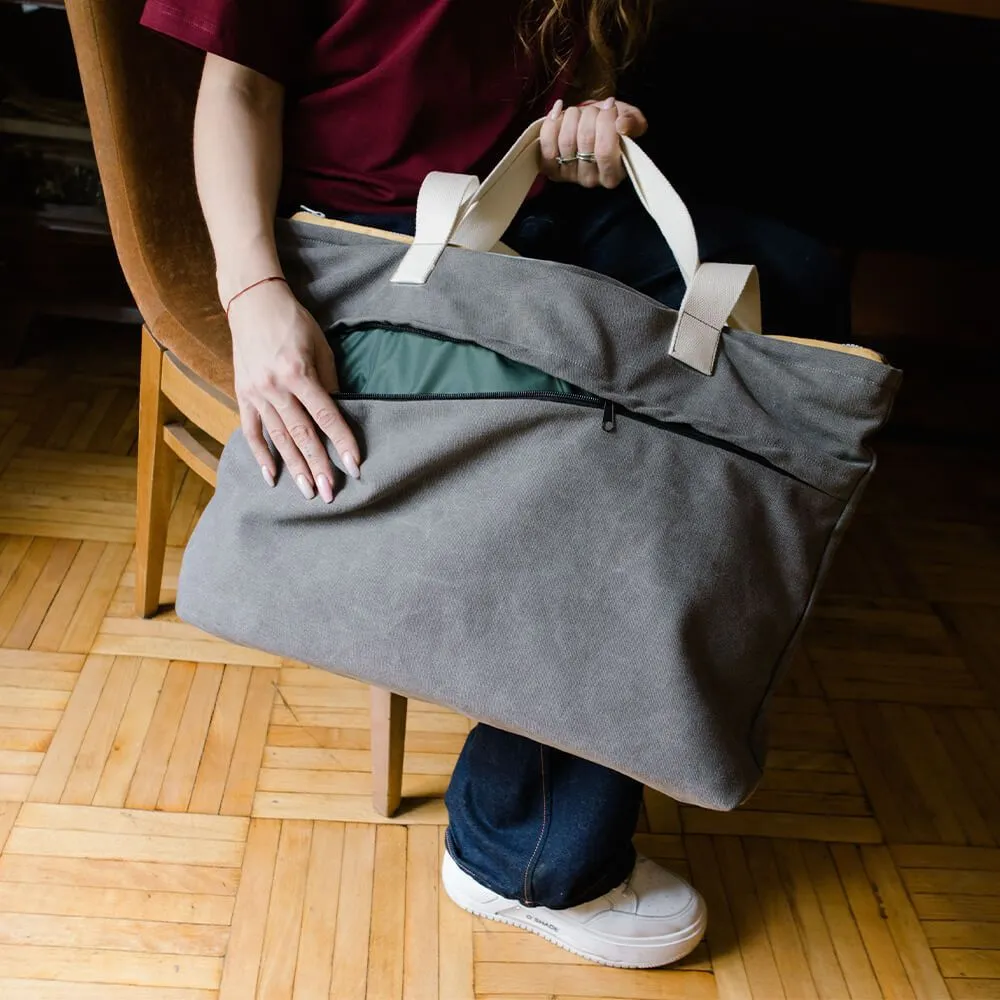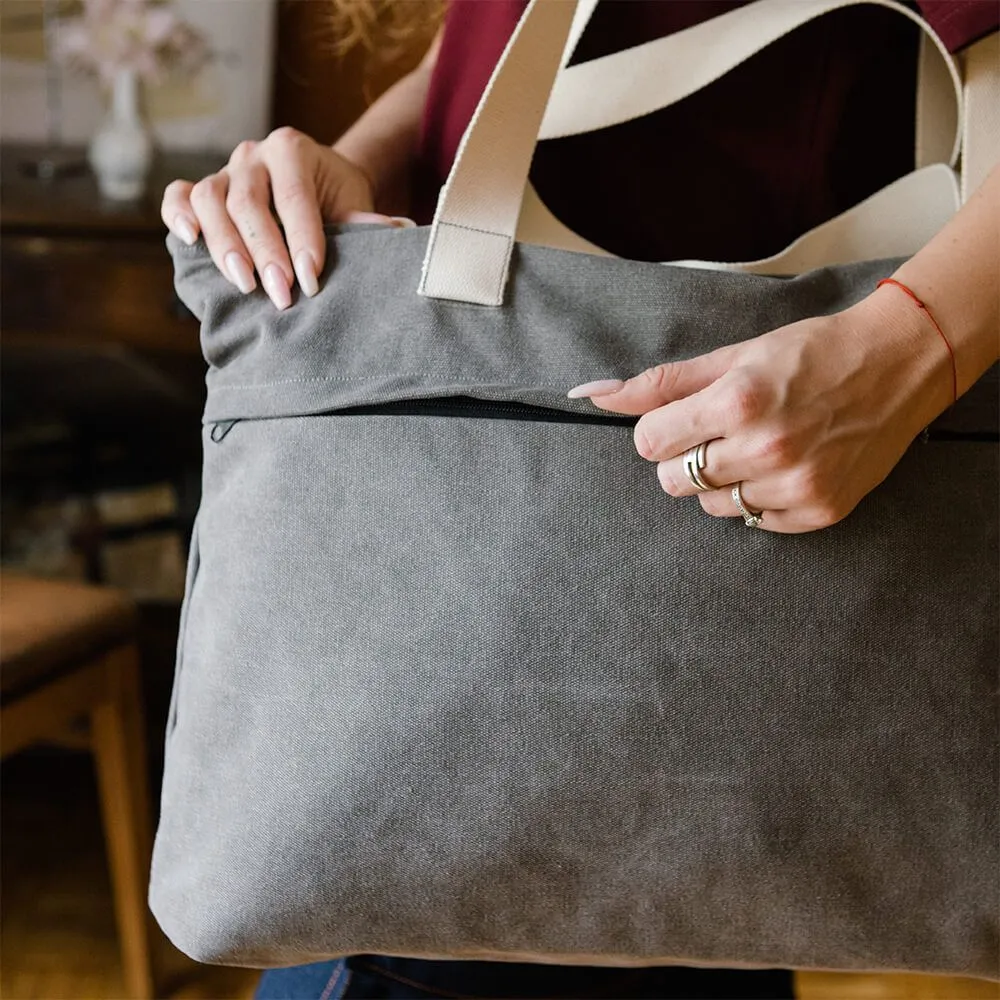 Красивая и вместительная серая сумка тоут нашего производства.