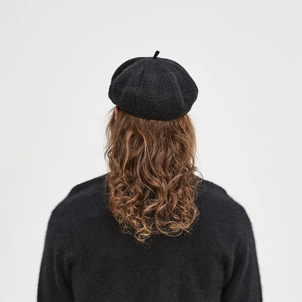 Тонкий берет фактурной вязки с хвостиком из пряжи с альпакой и шерстью мериноса. Сделано в мастерской екатеринбургского бренда Check Ya Head.