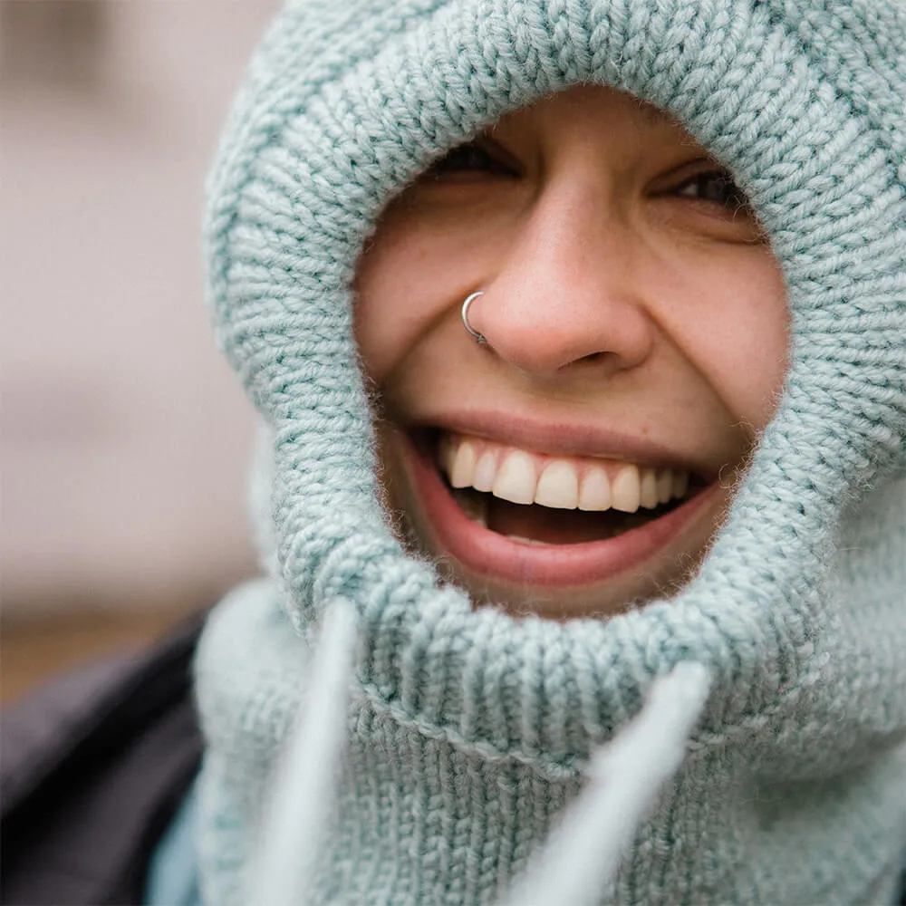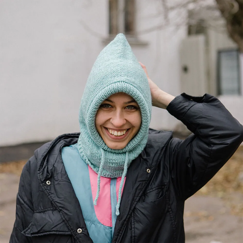 • Его можно стянуть с головы и оставить на шее, так он может заменить вам шарф или снуд.