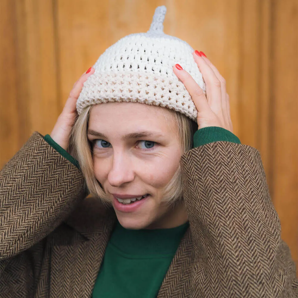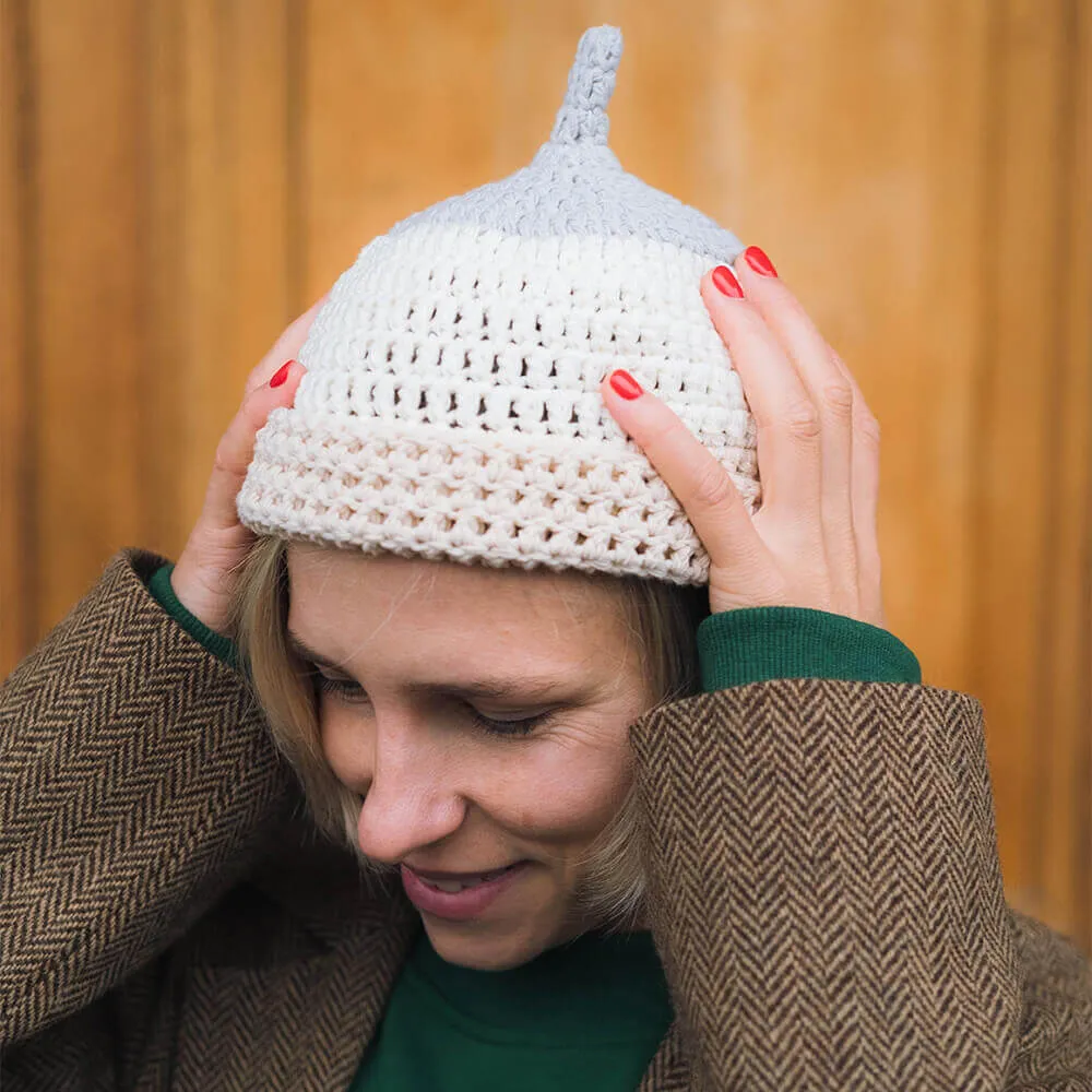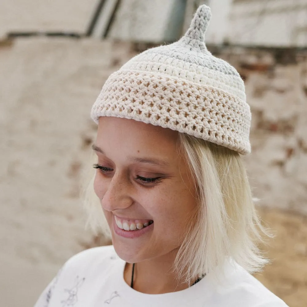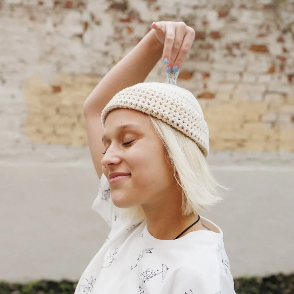 Трехцветная ажурная шапка с хвостиком от екатеринбургского бренда Check Ya Head.