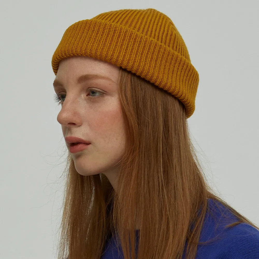 Шапка цвета шафран из теплой полушерстяной пряжи.