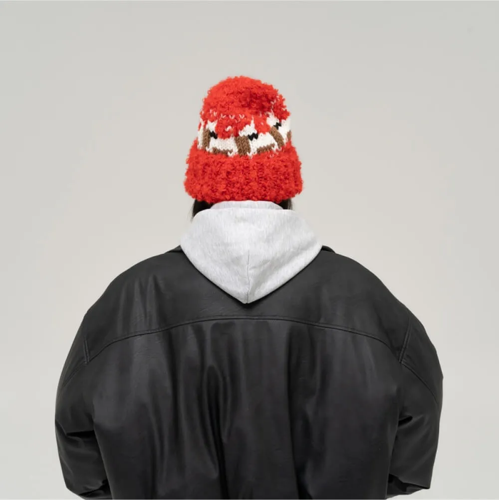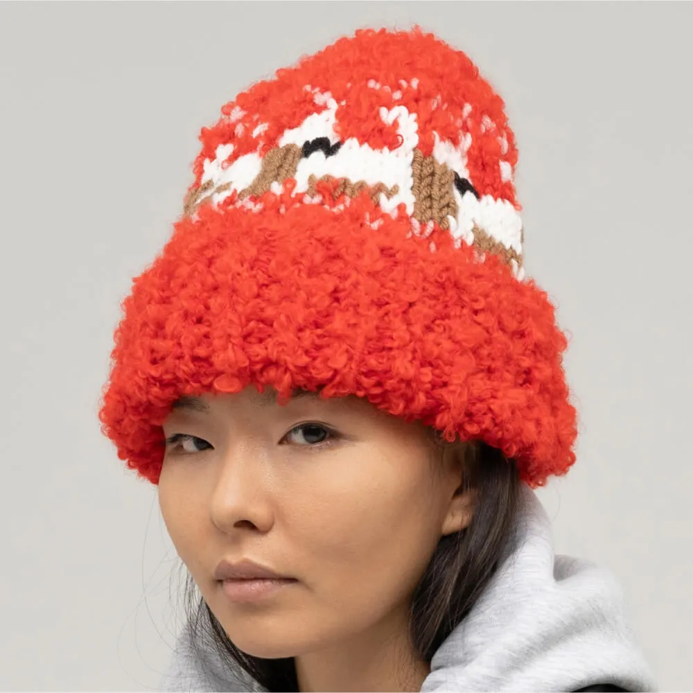 Шапка ручной работы красного цвета от бренда Check Ya Head из Екатеринбурга.